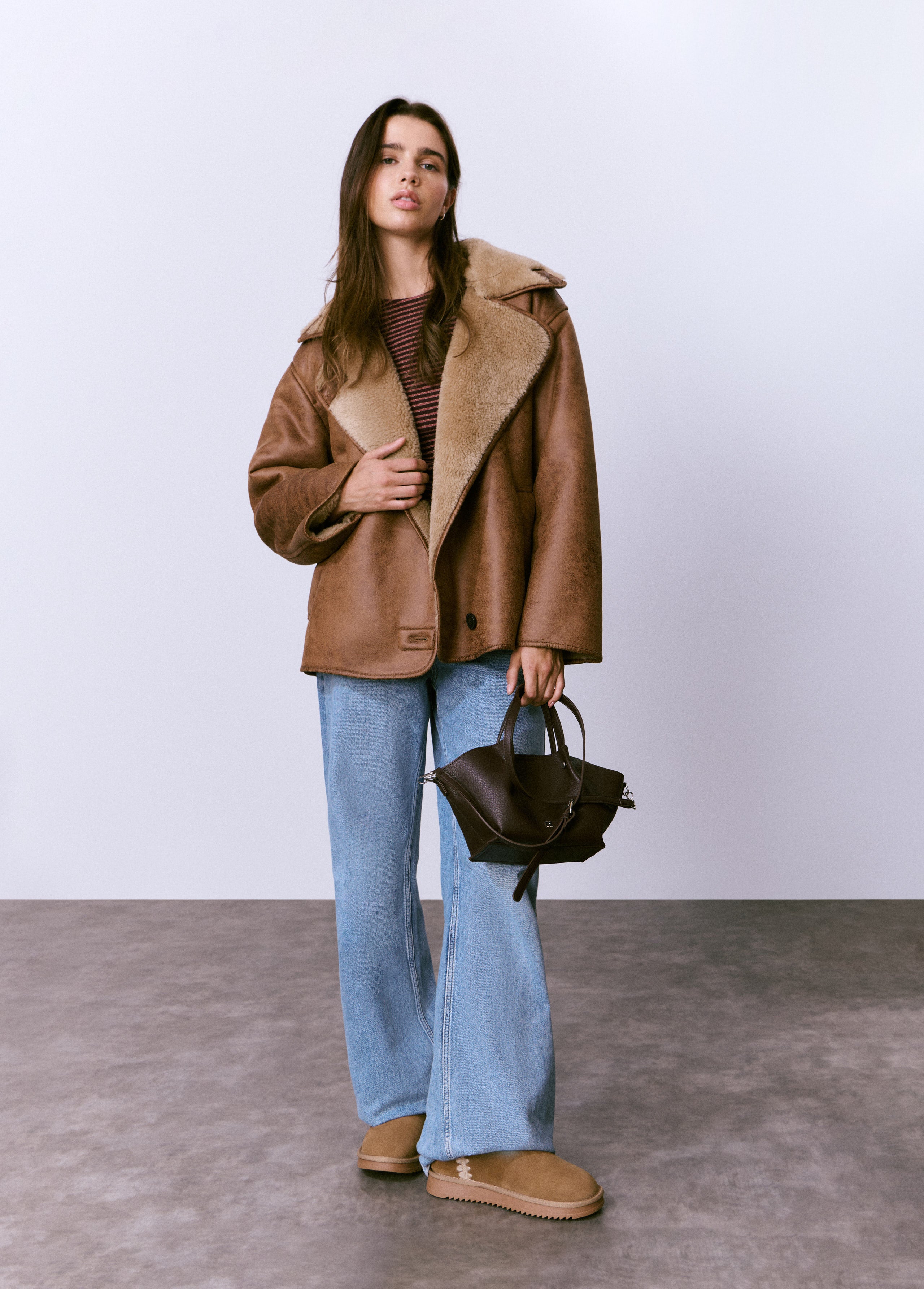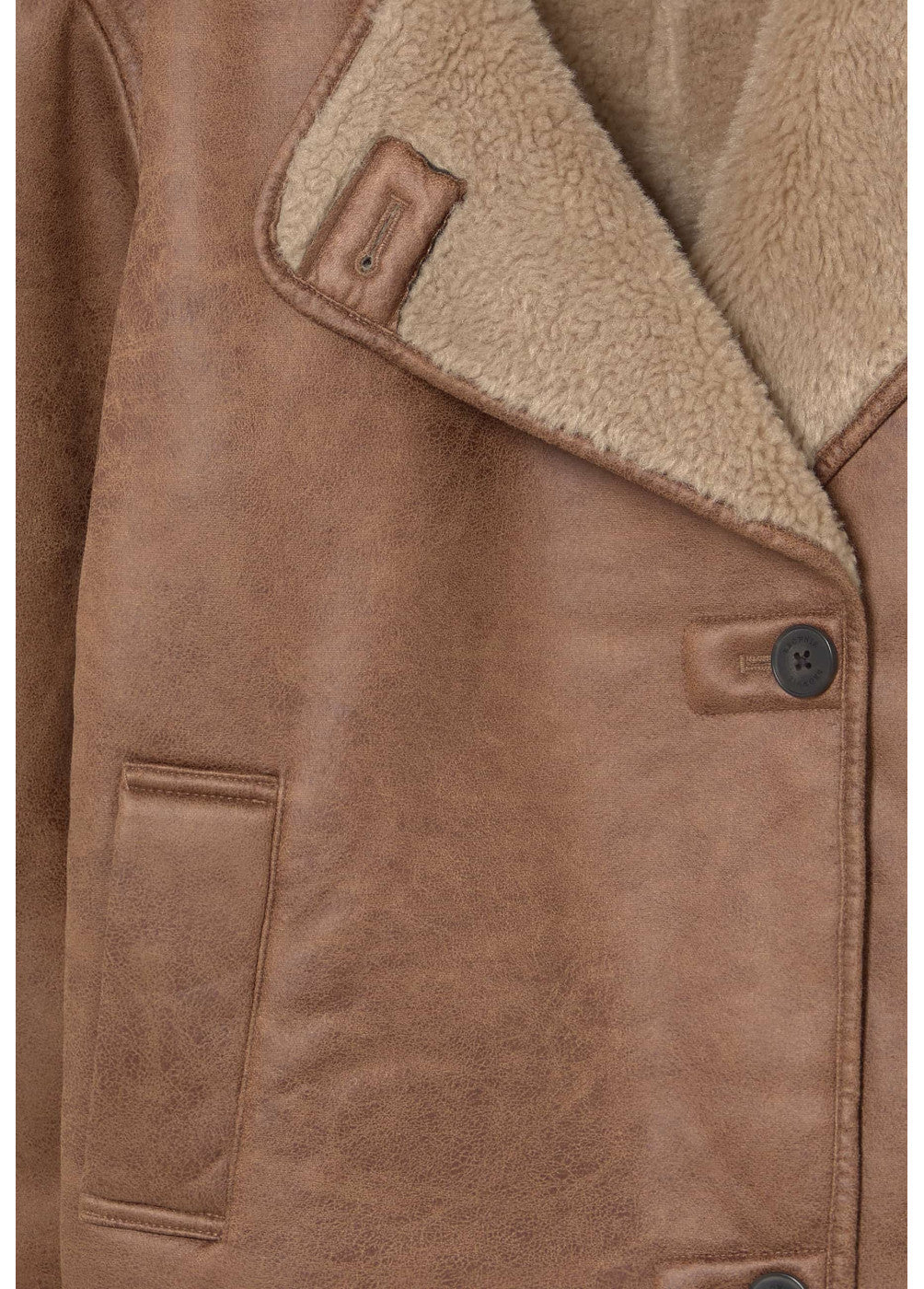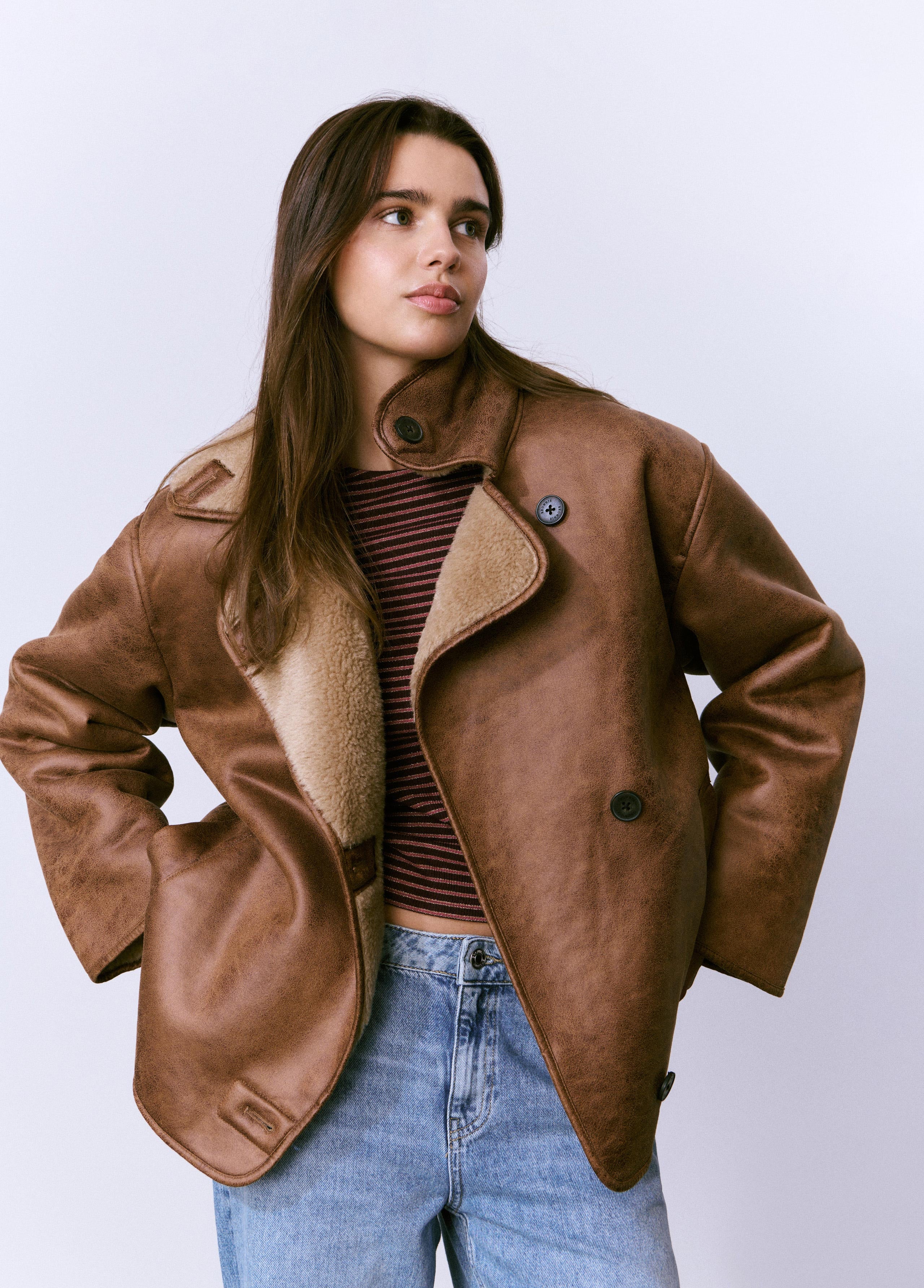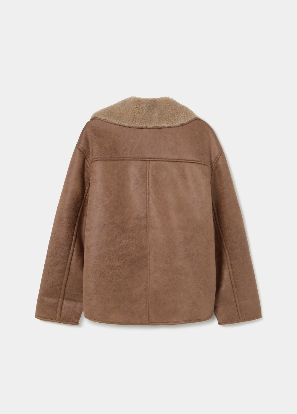 Abrigo doblefaz efecto piel con cierre de botones en el centro y forro tipo borrego.