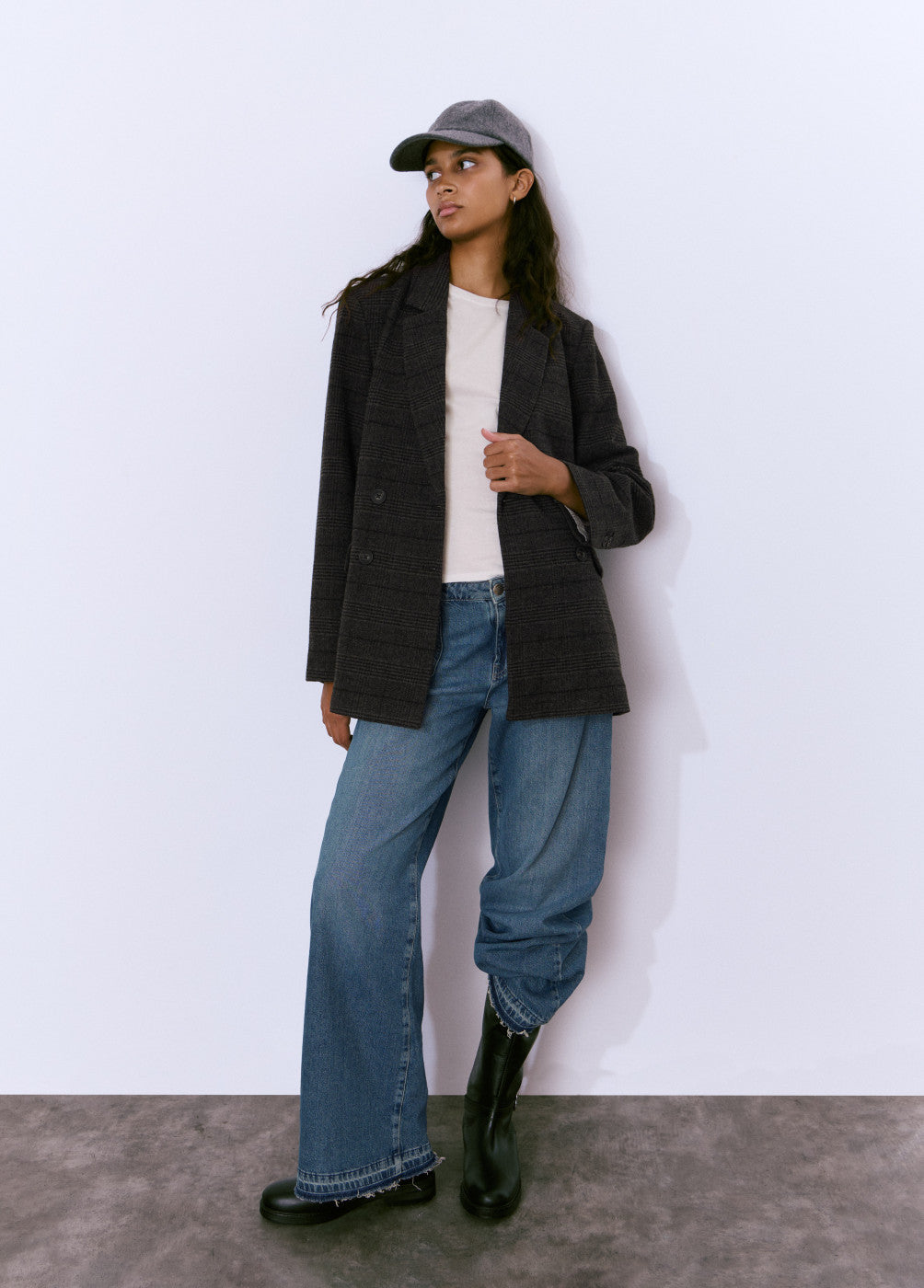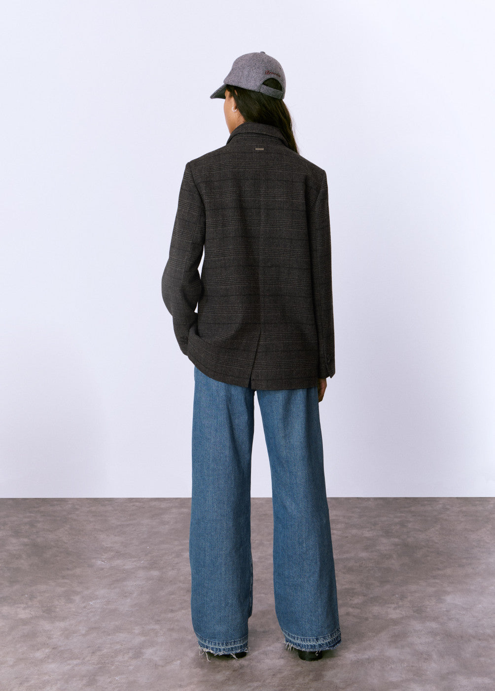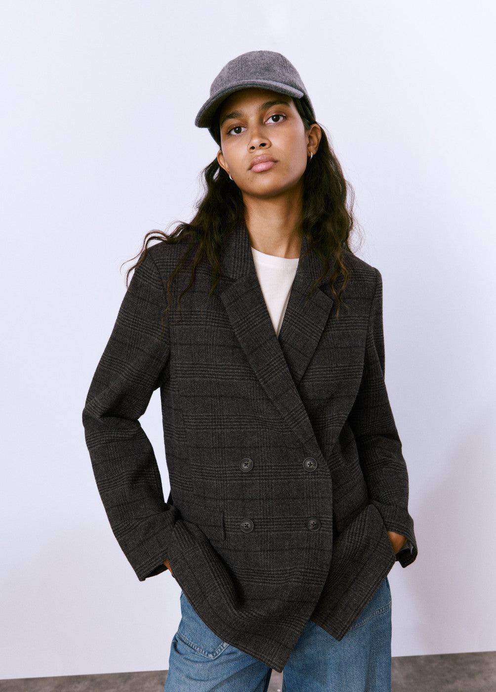 Americana cruzada de paño con botones.