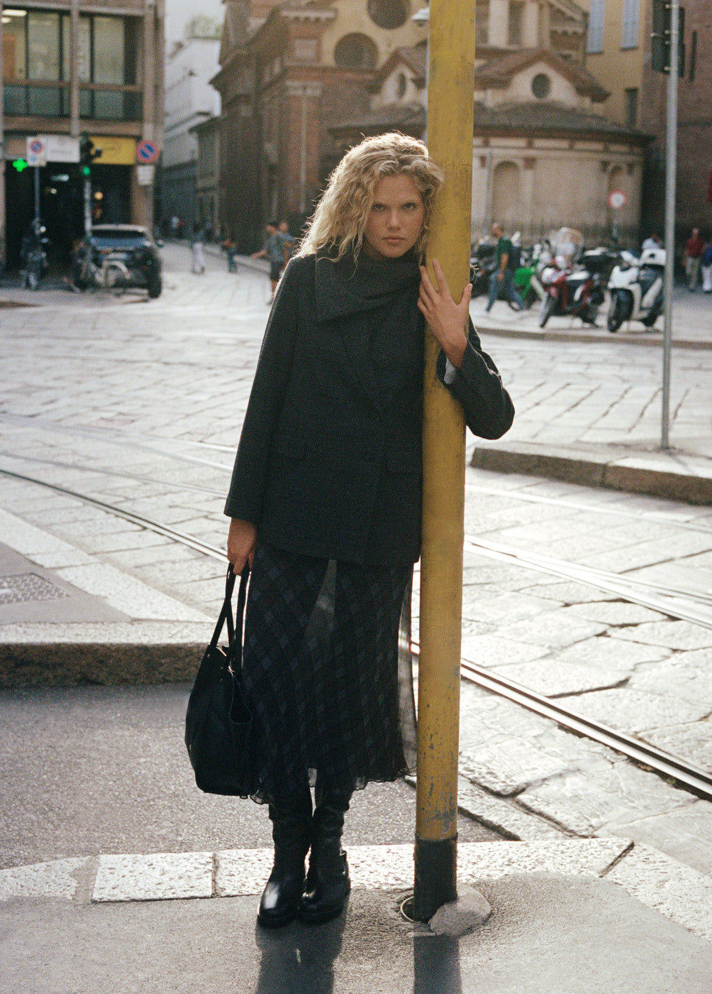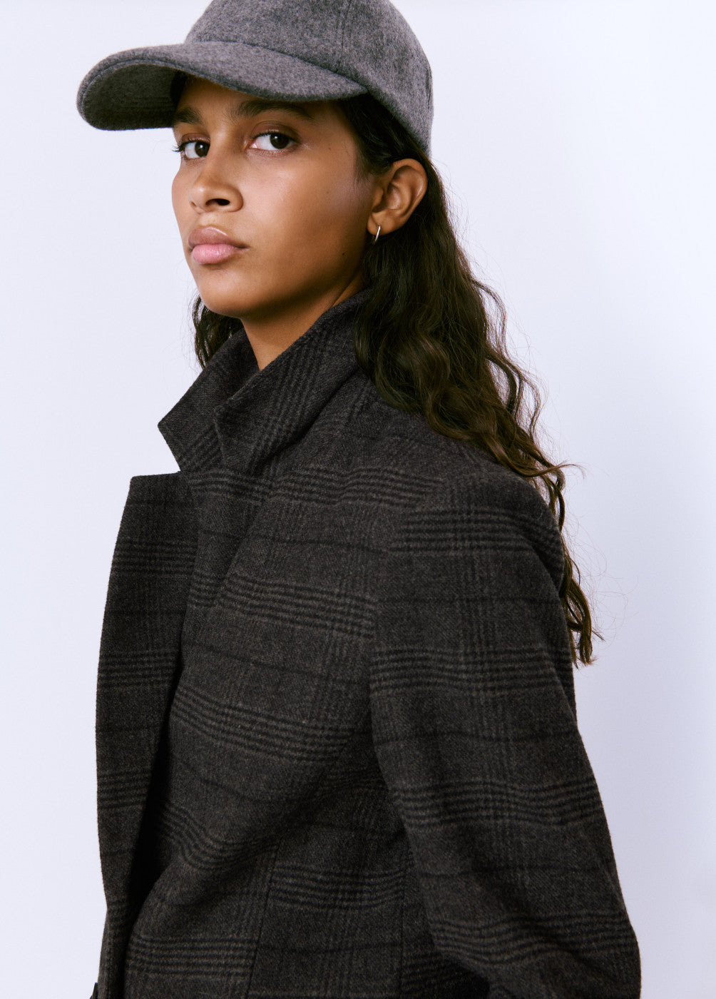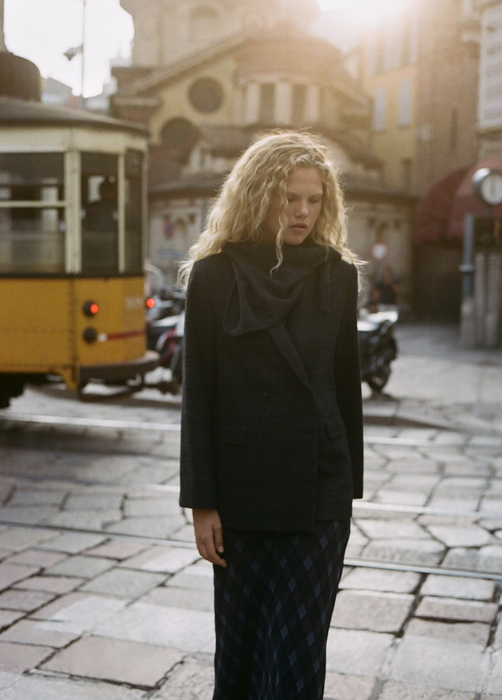 Americana cruzada de paño con botones.