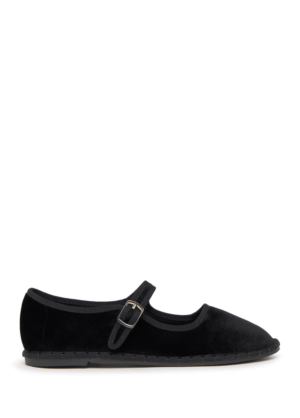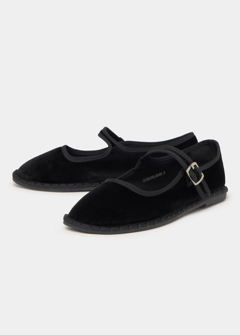 Bailarina terciopelo con cierre mediante hebilla ajustable a varias medidas.