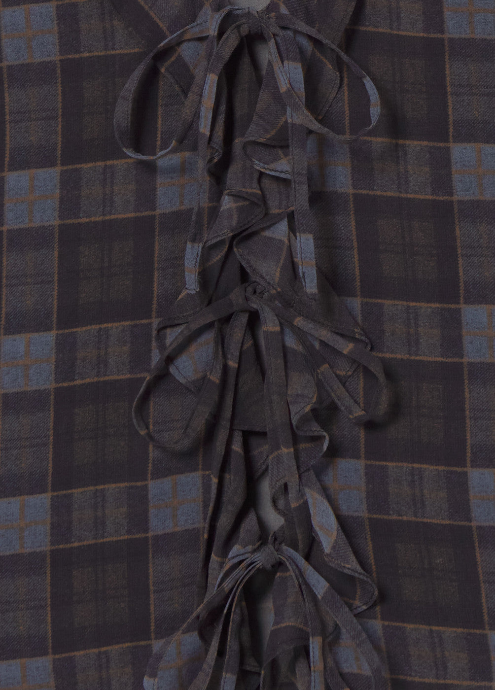 Blusa volantes de cuadros con detalle de cierre mediante lazos en la parte frontal.