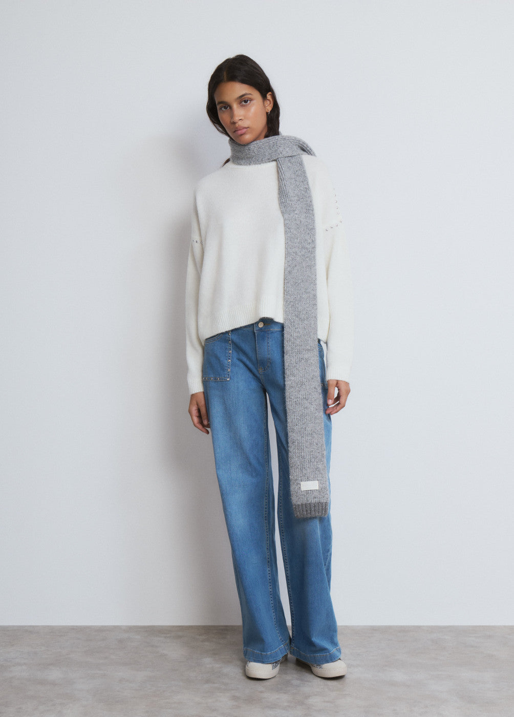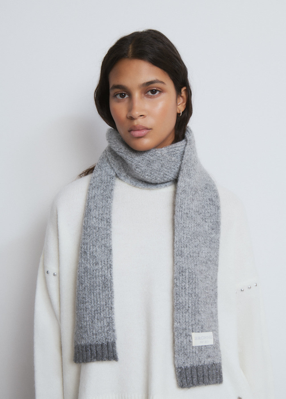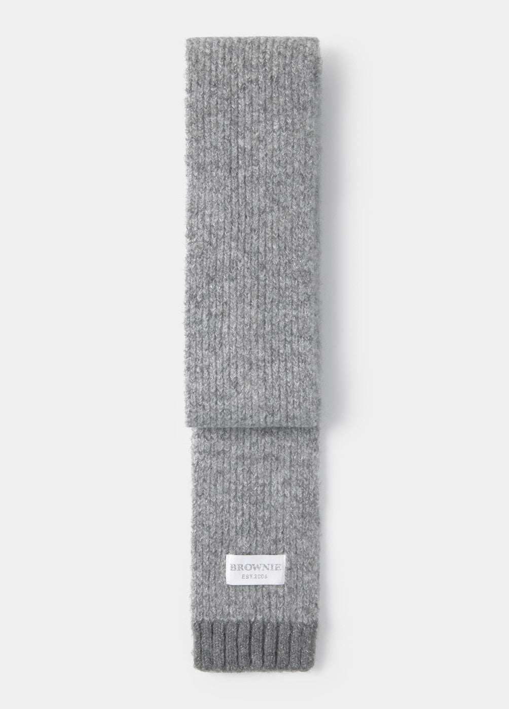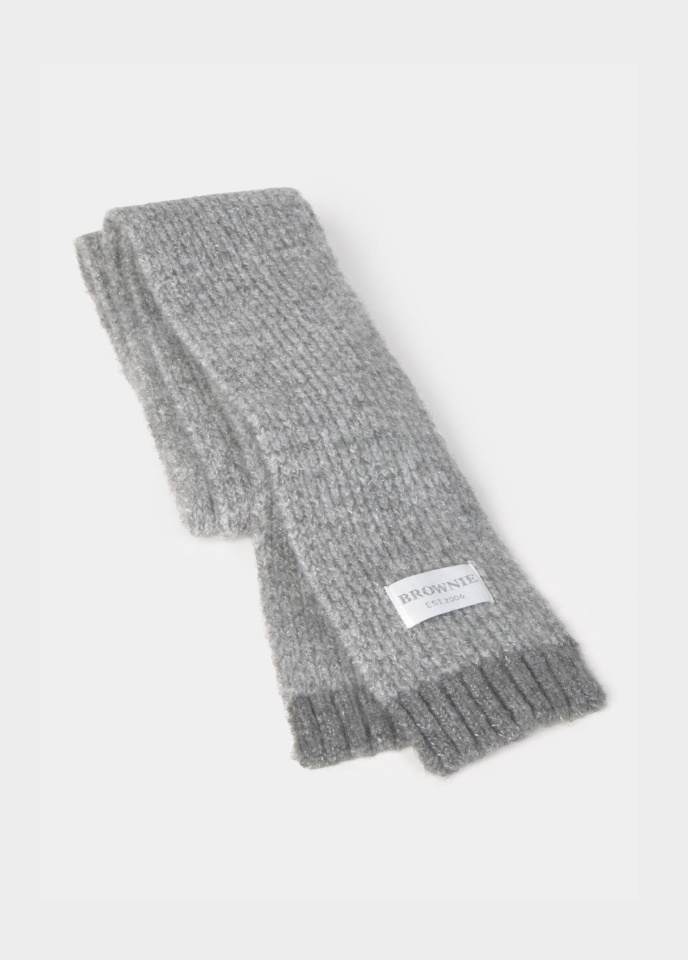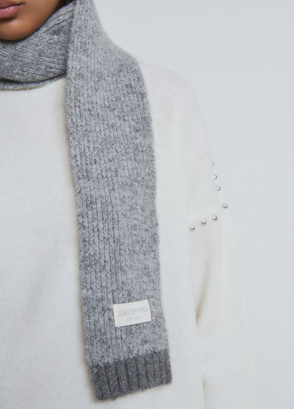 Bufanda estrecha con lurex en color gris.