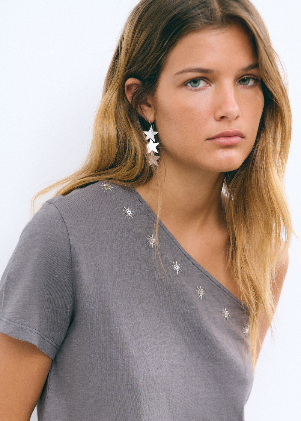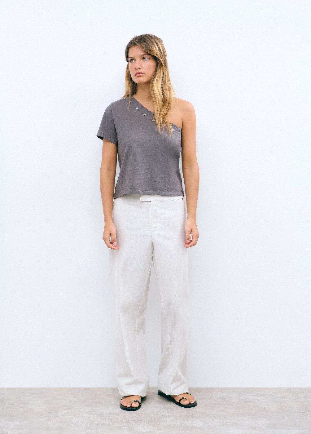 Camiseta asimétrica bordada