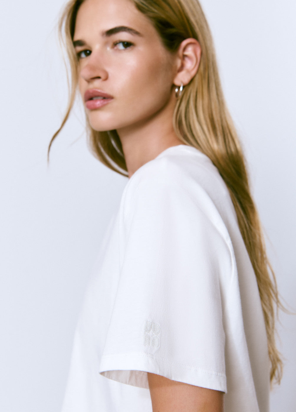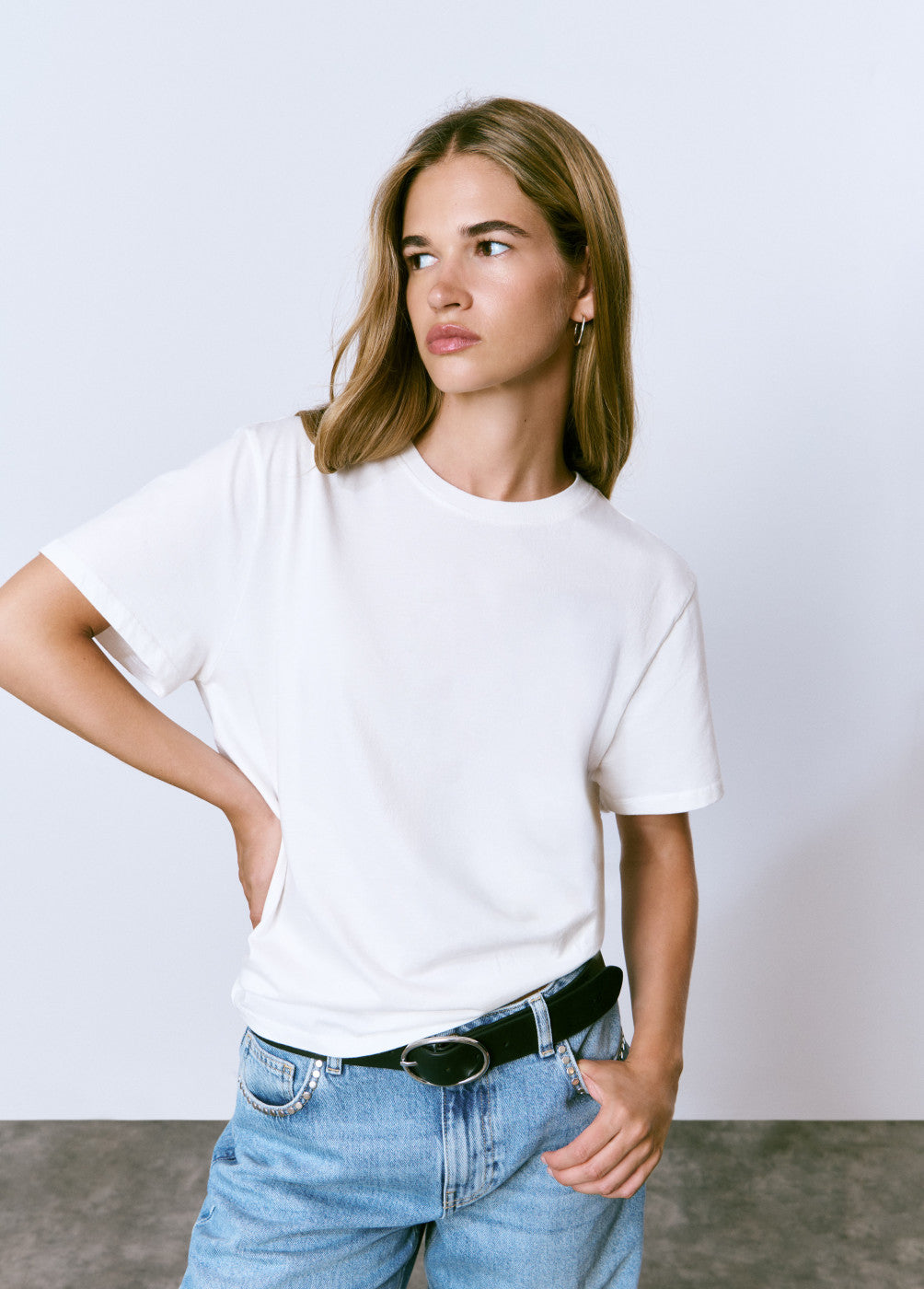 Camiseta básica de manga corta y cuello redondo de algodón.