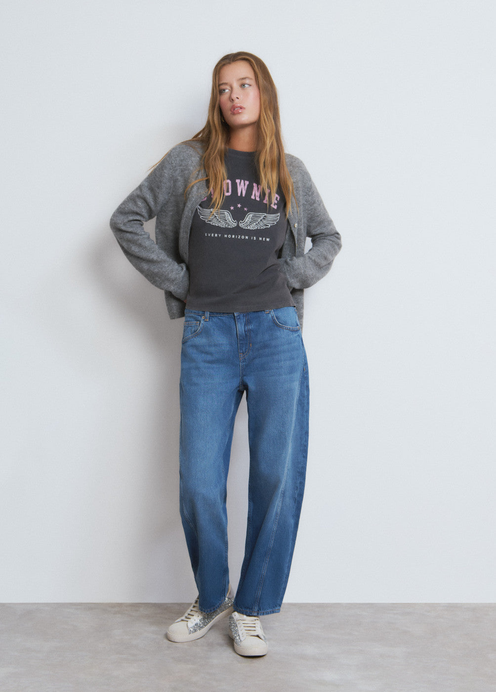 Camiseta de manga corta y cuello redondo con logo Brownie y alas.