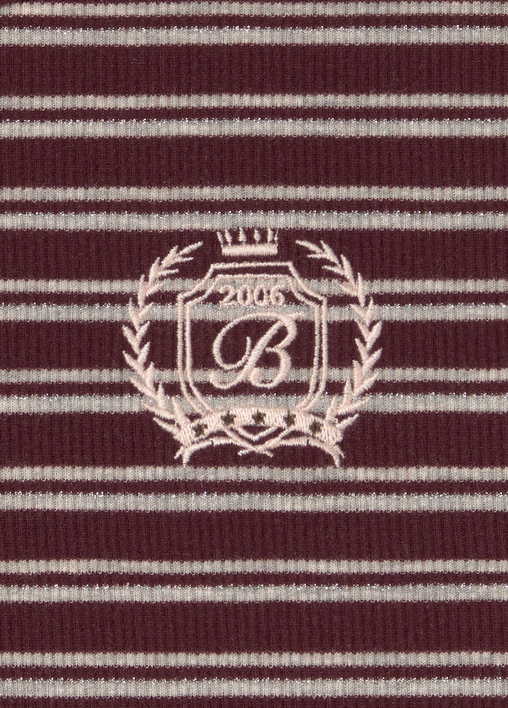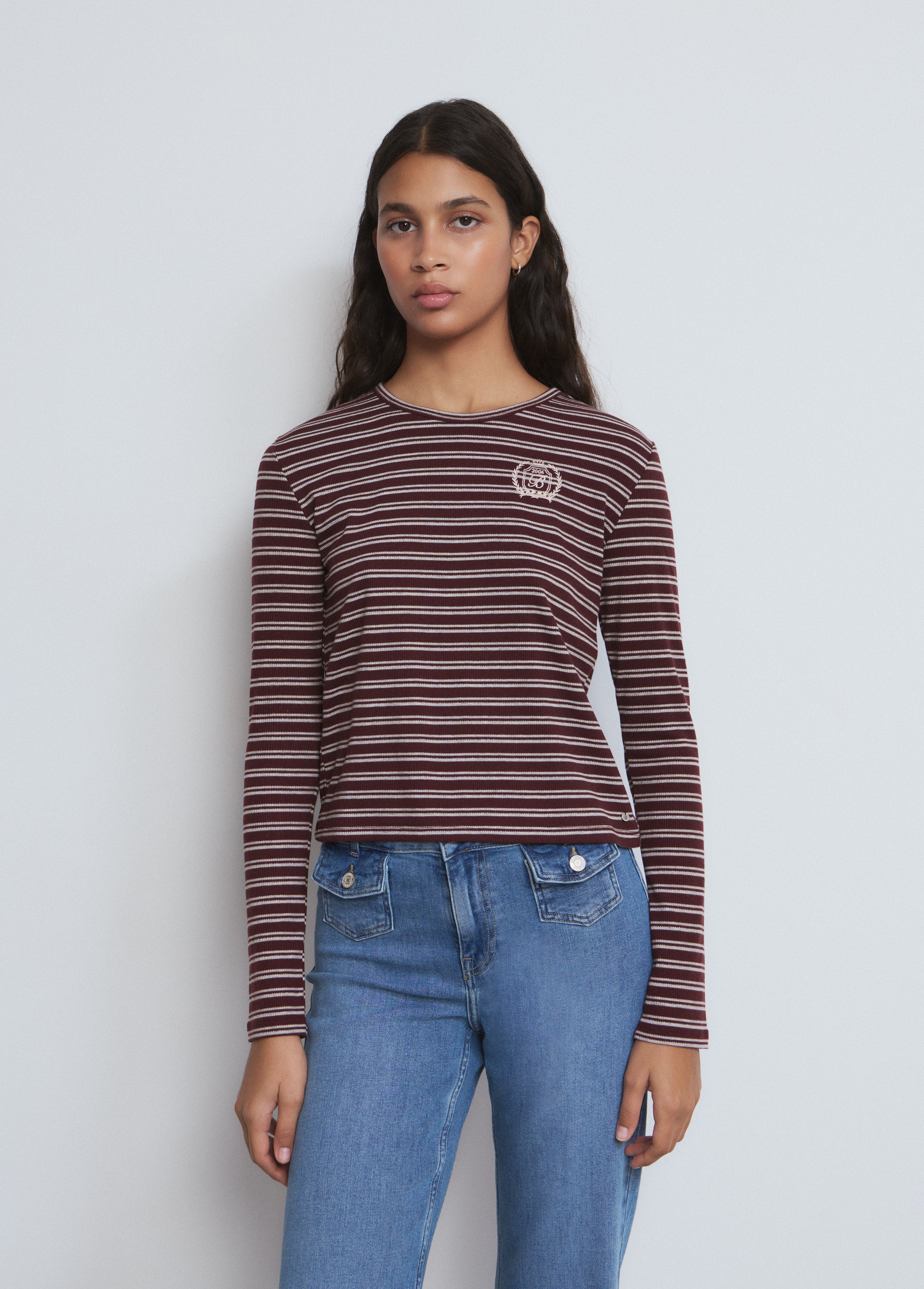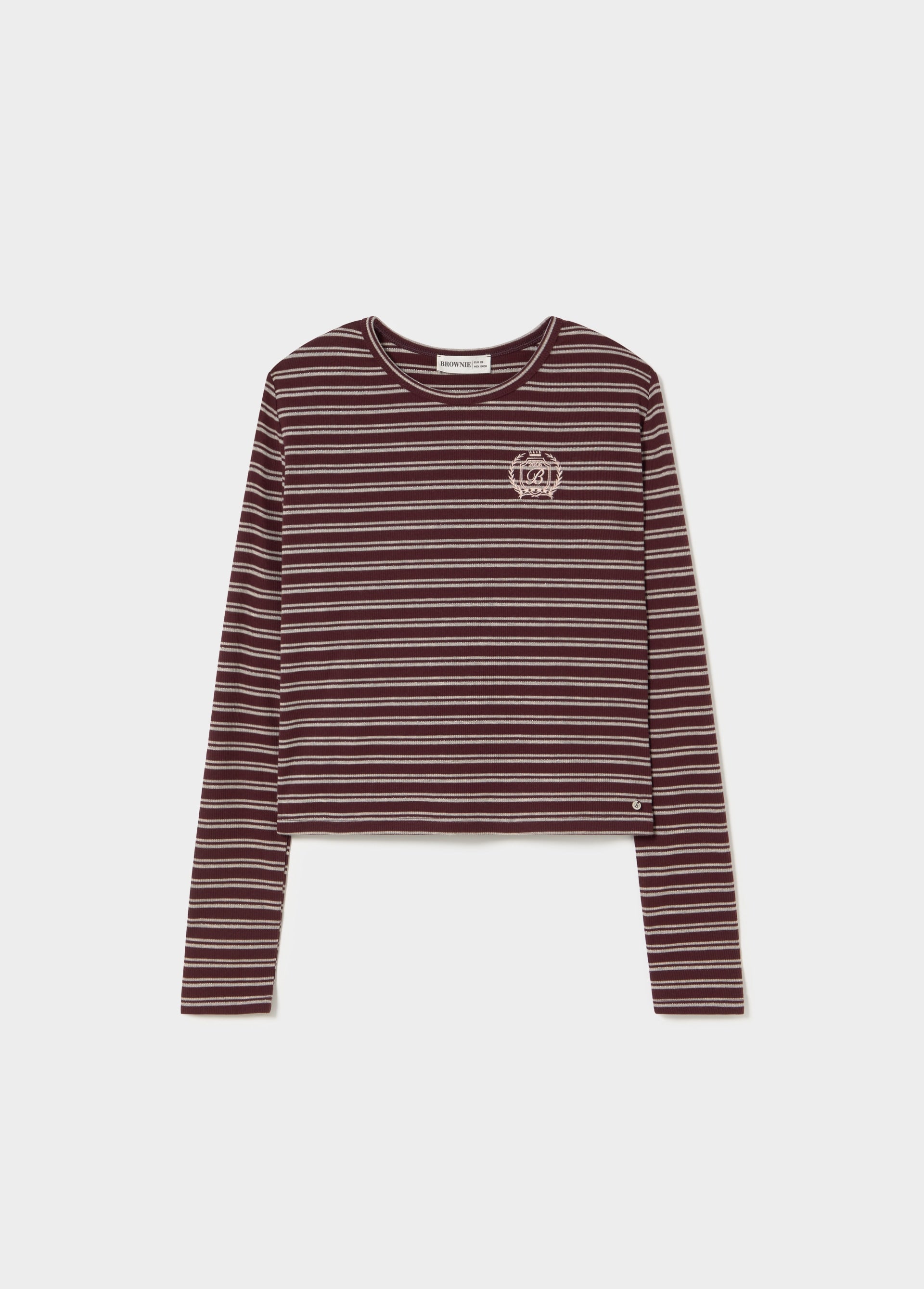 Camiseta de manga larga y cuello redondo de rayas con escudo.