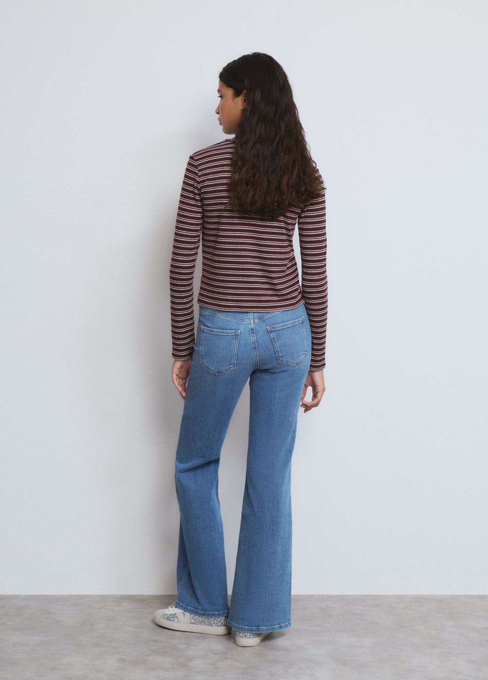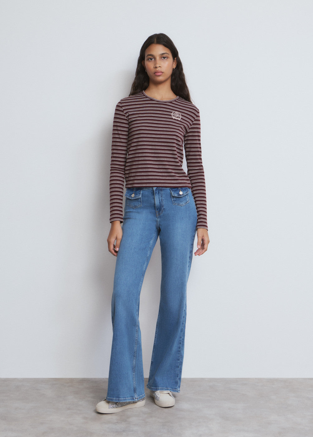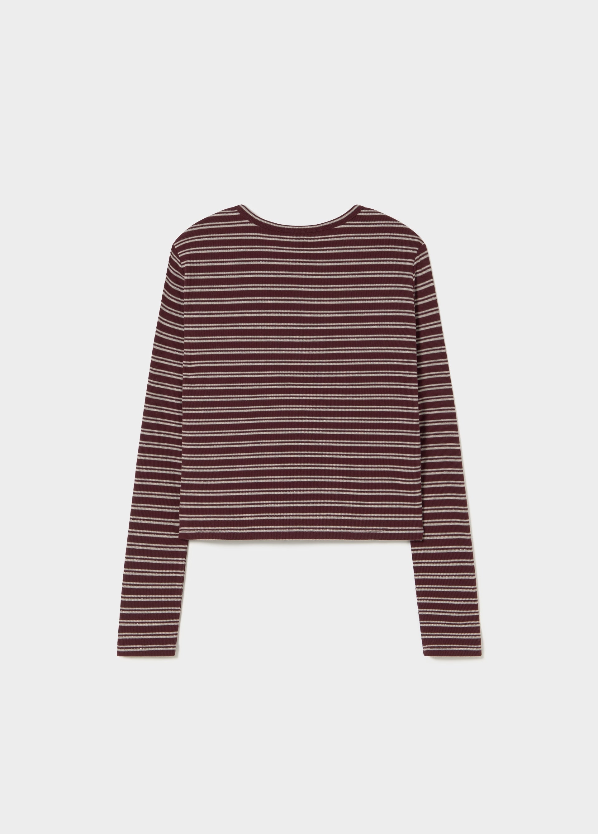 Camiseta de manga larga y cuello redondo de rayas con escudo.