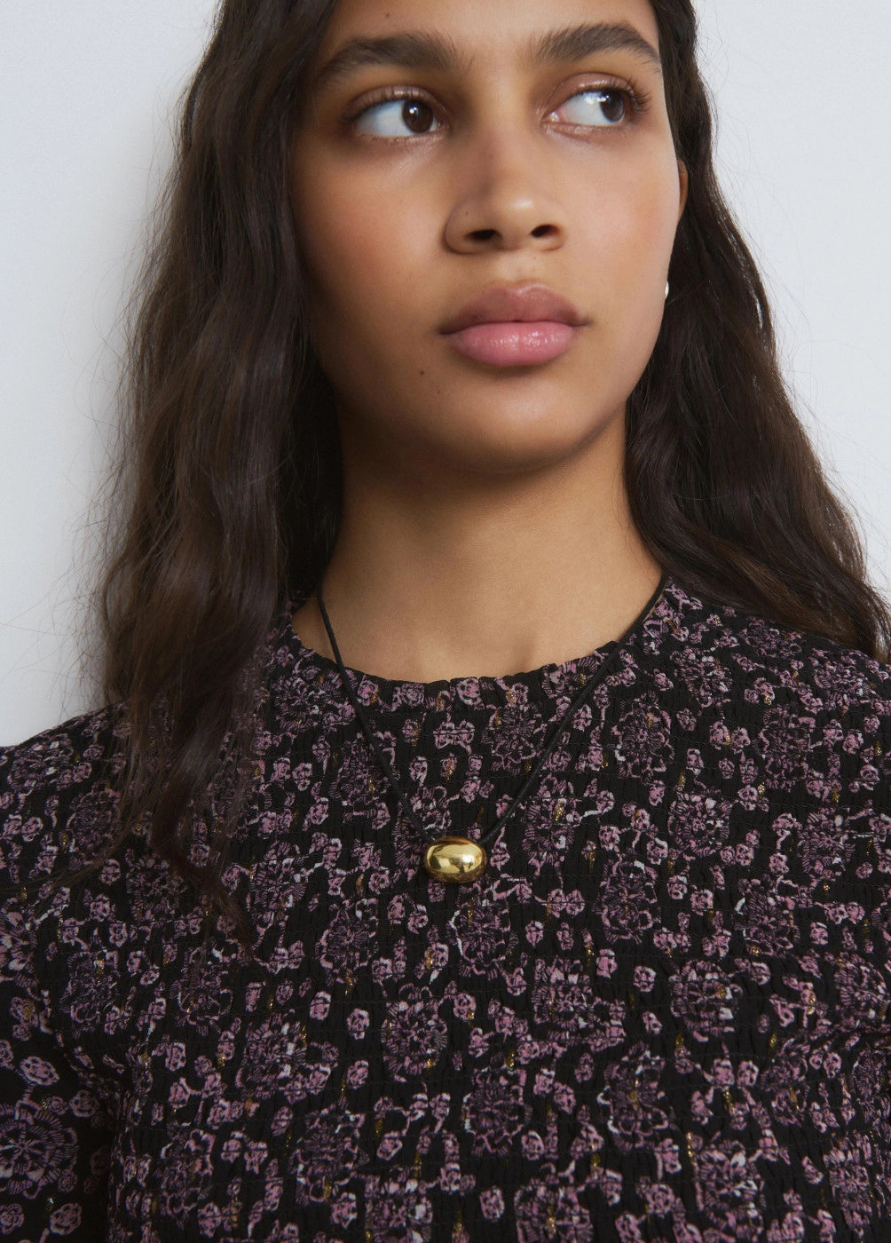 Collar de cuerda con pieza dorada.