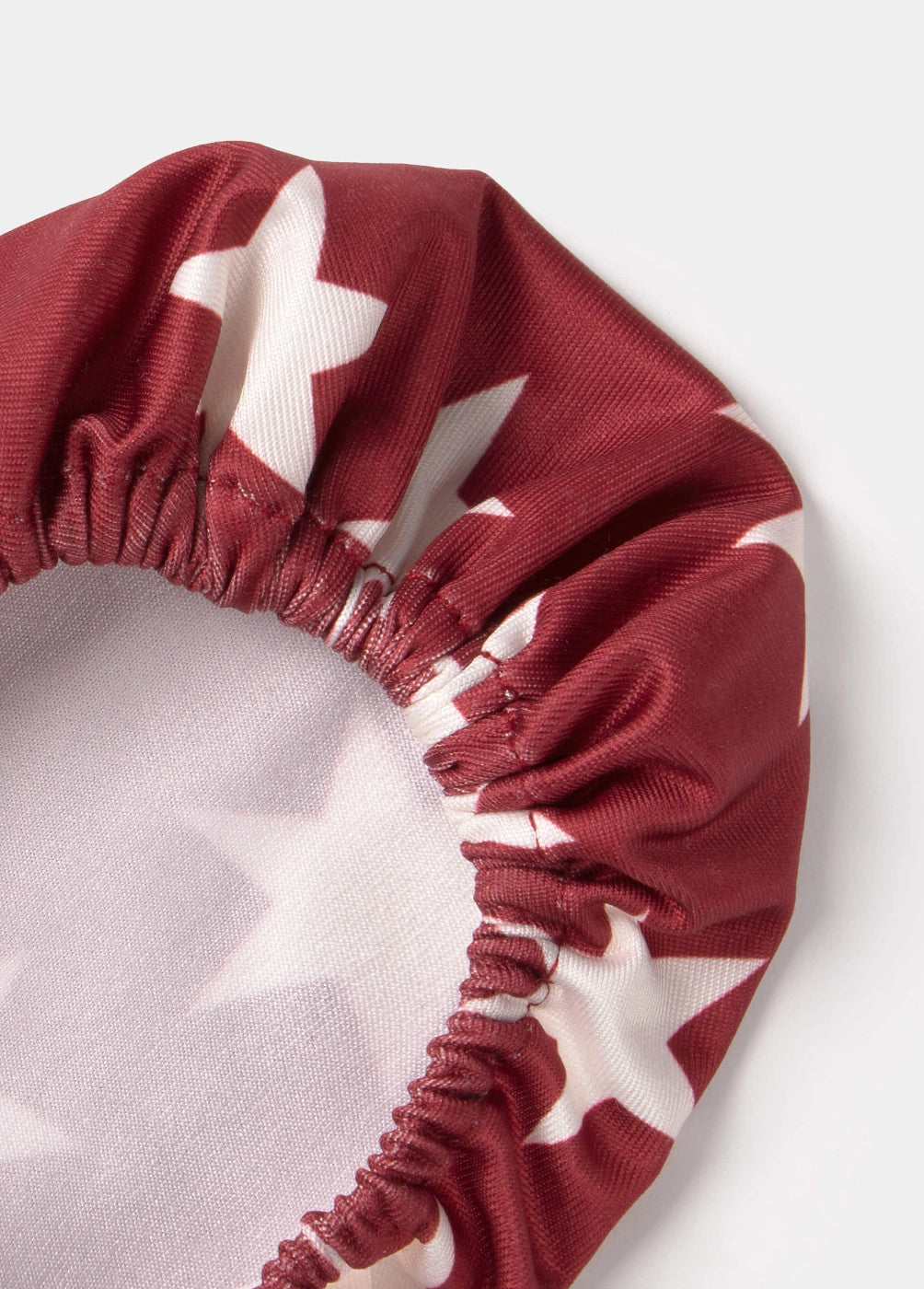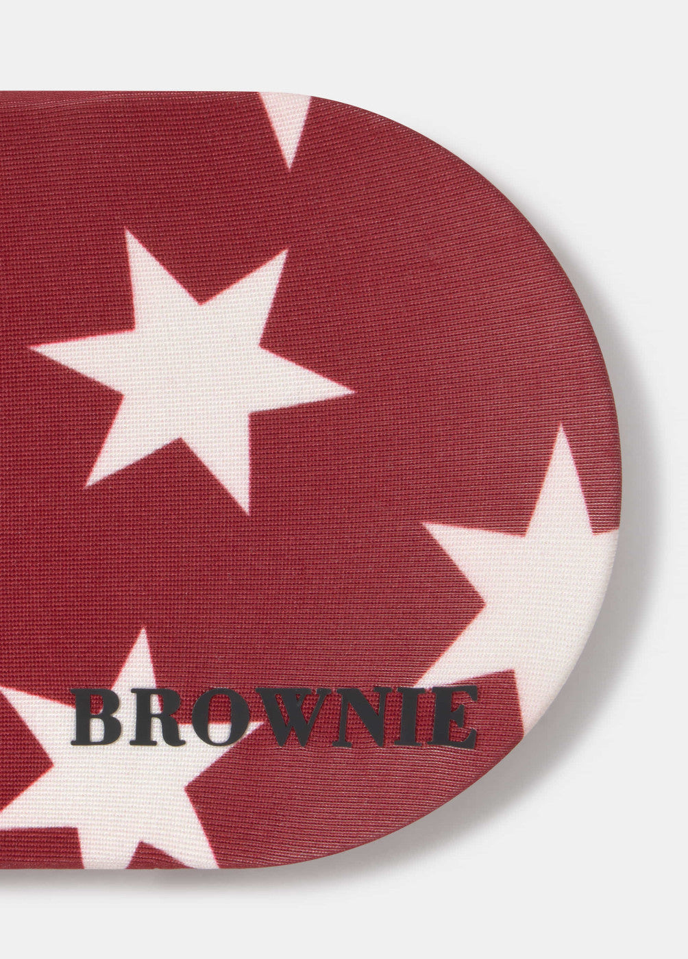 Funda para gafas de esquí con estampado de estrellas y logo Brownie en color rojo.