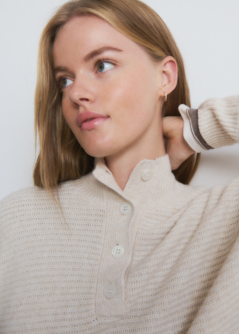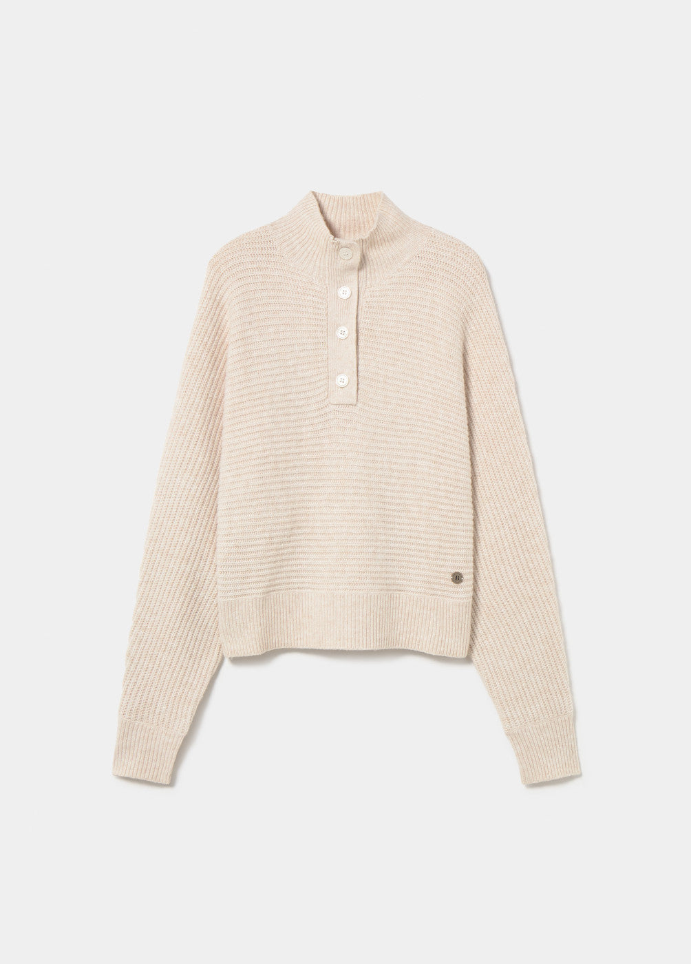 Jersey de manga larga y cuello redondo con cierre mediante botones.