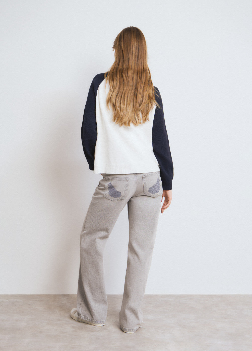 Jersey cuello redondo de manga ranglan con detalle estrella bordada con tachas.