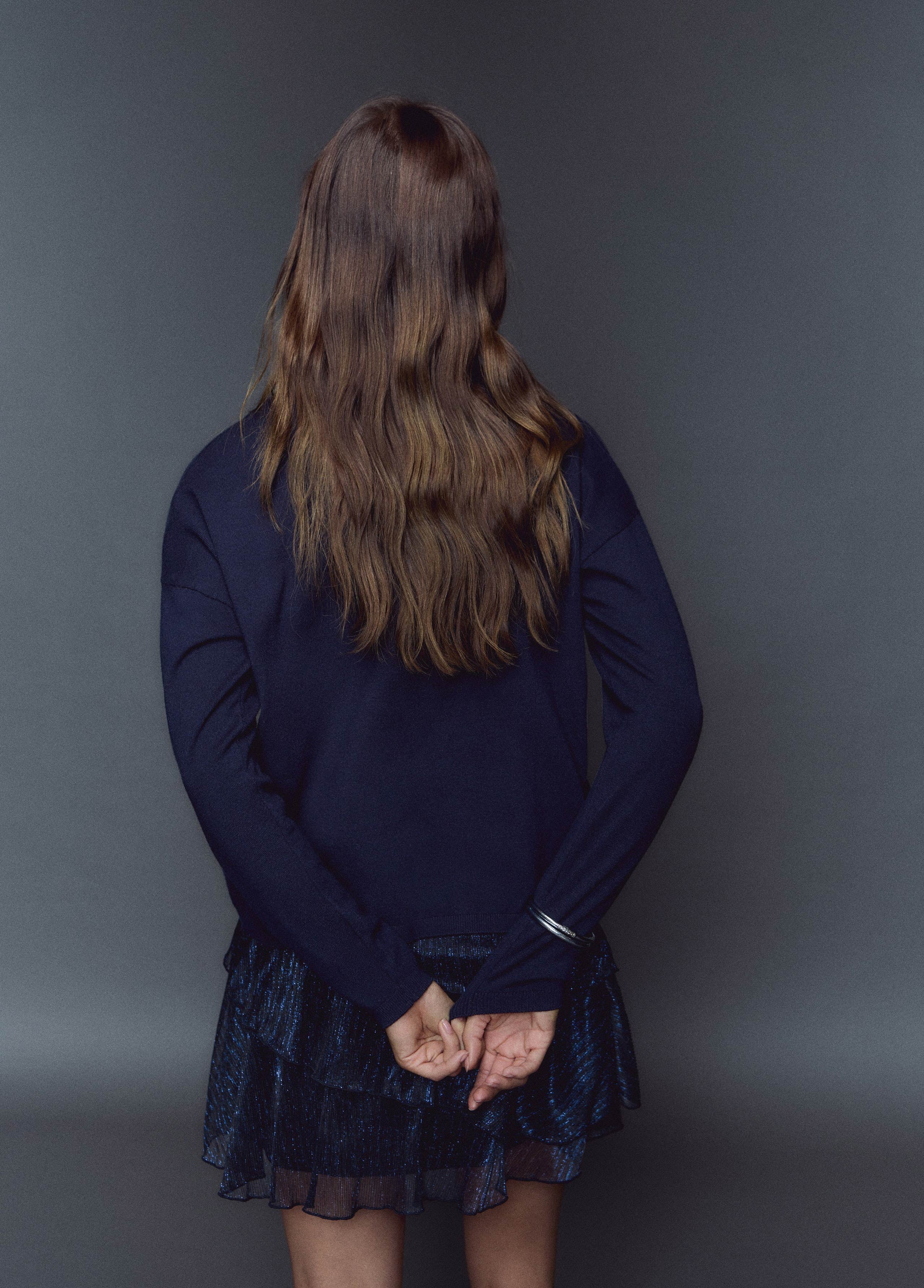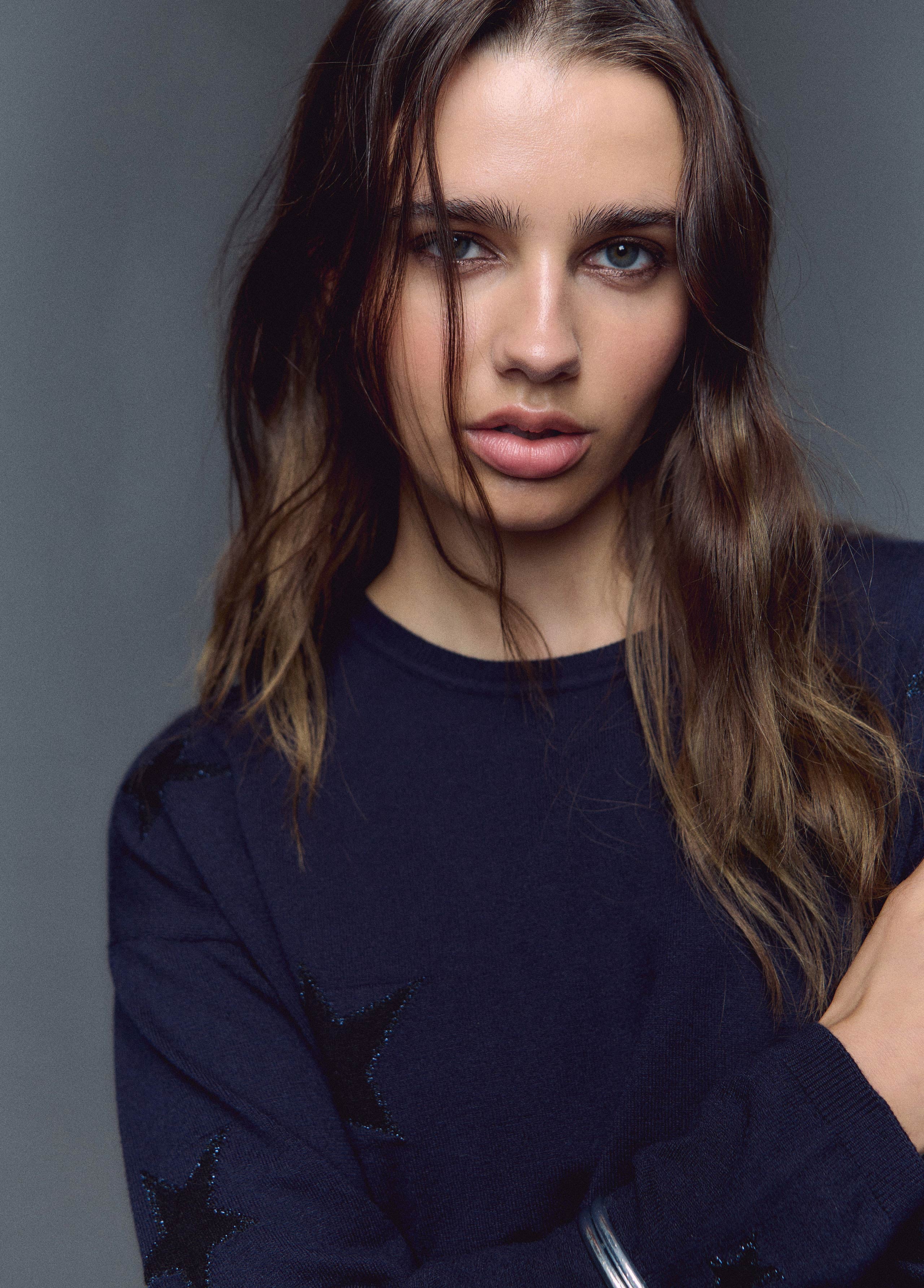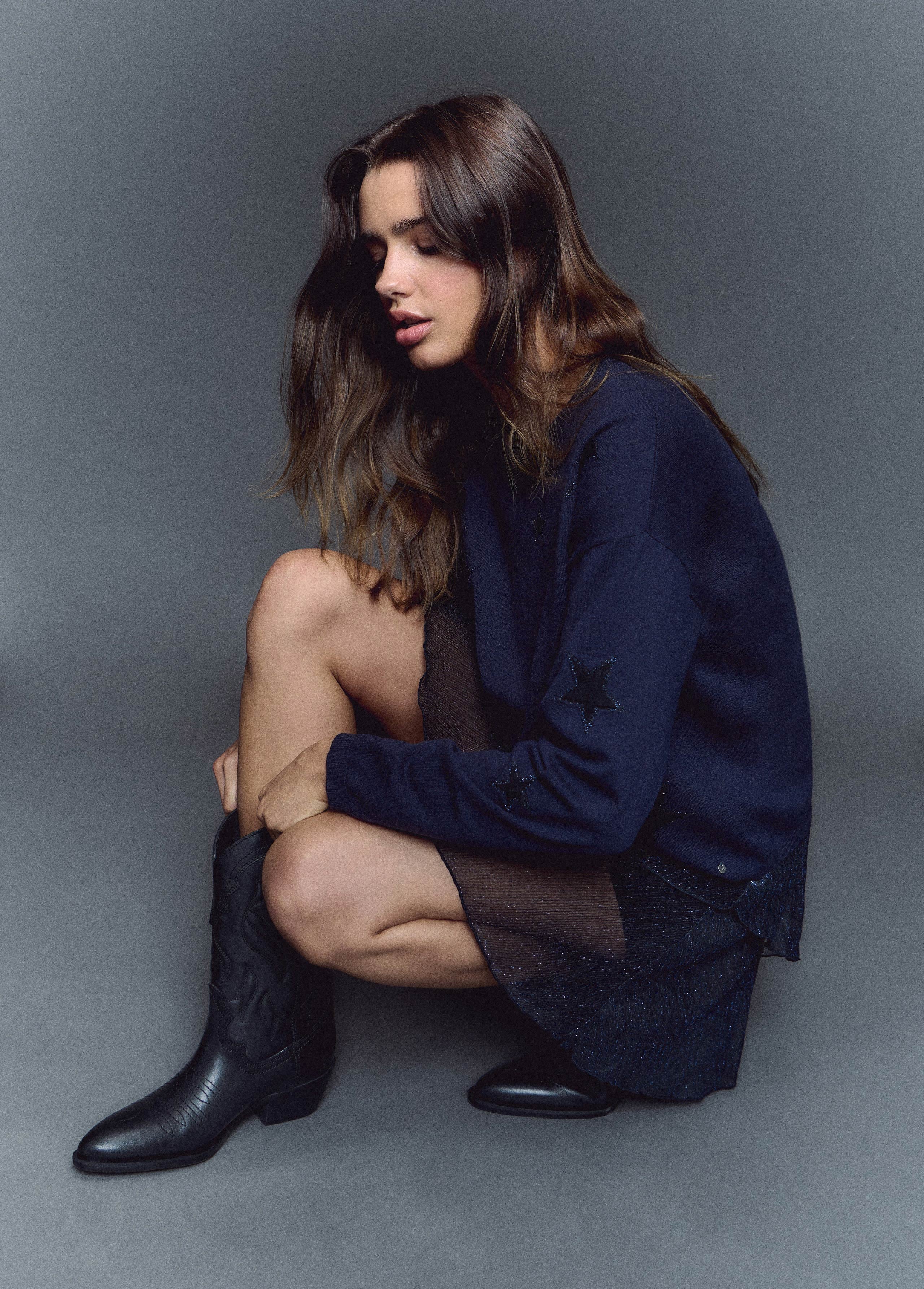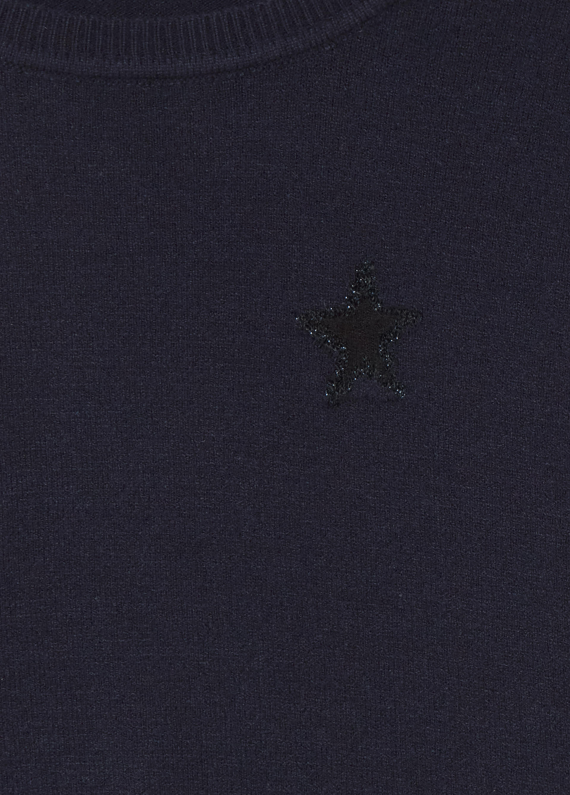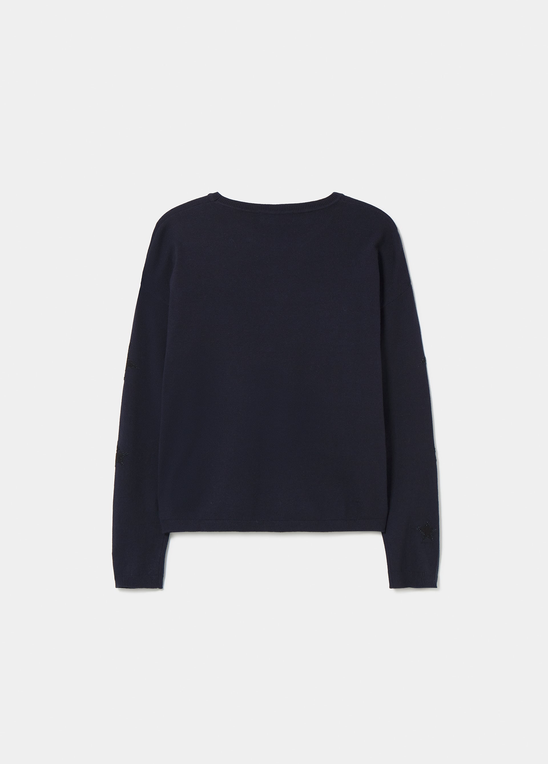 Jersey de manga larga, cuello redondo y detalle de estrellas. Color azul marino.