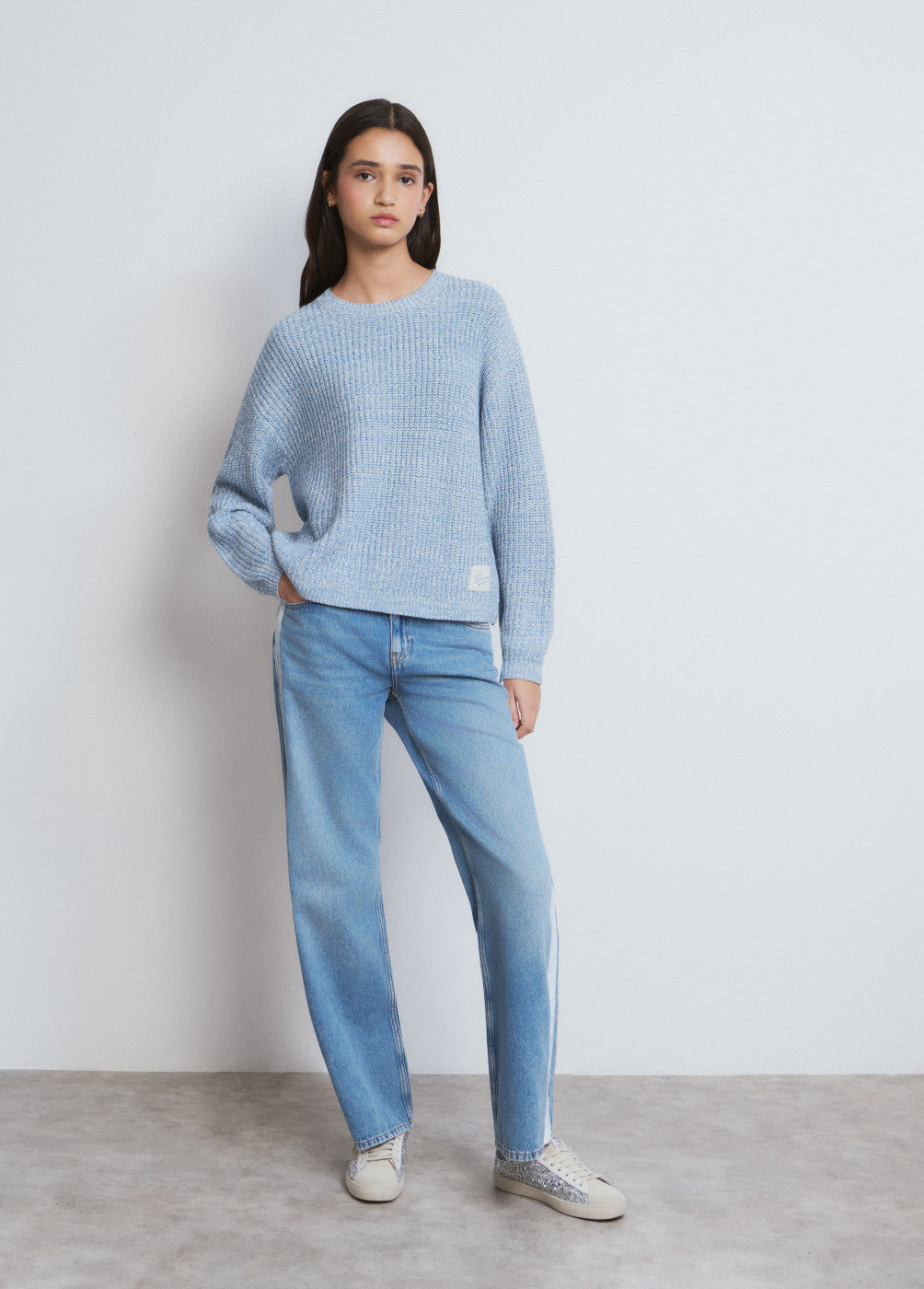 Jersey cuello redondo con logo brownie bordado.