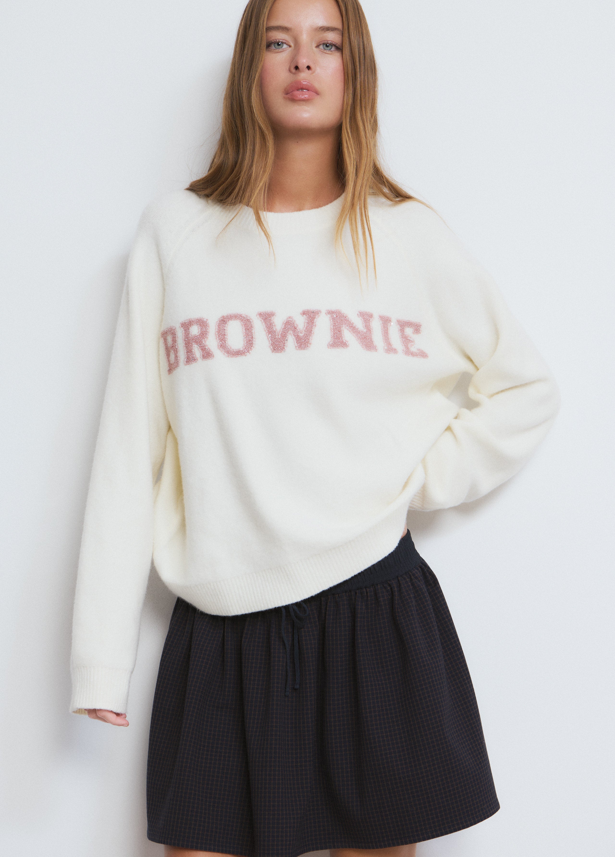 Jersey de manga larga, cuello redondo y logo Brownie bordado en el frontal.