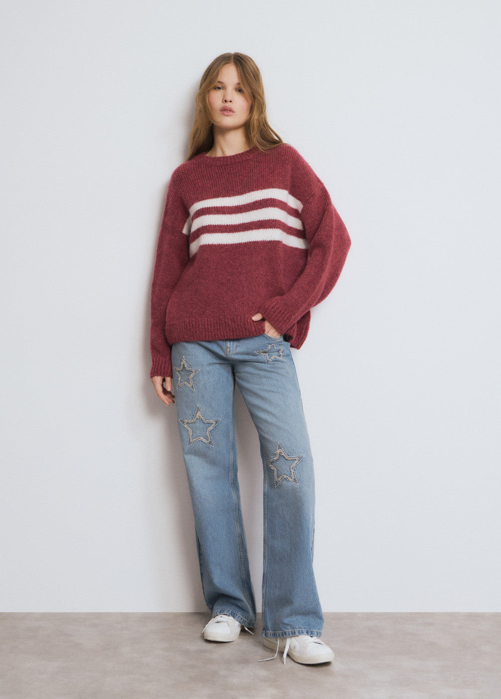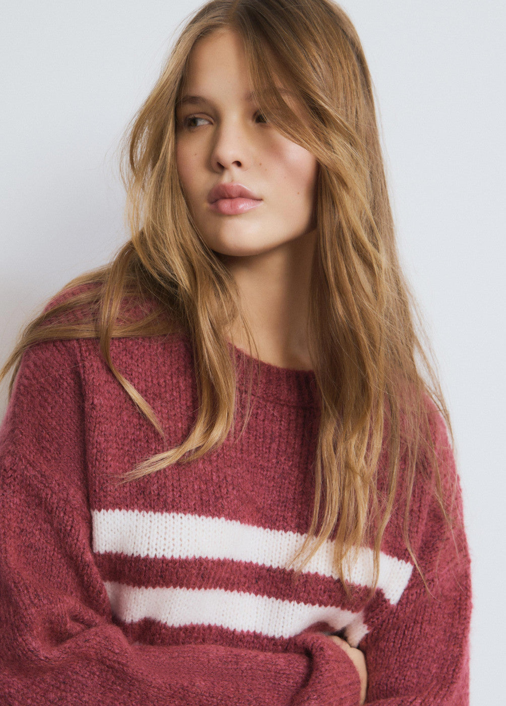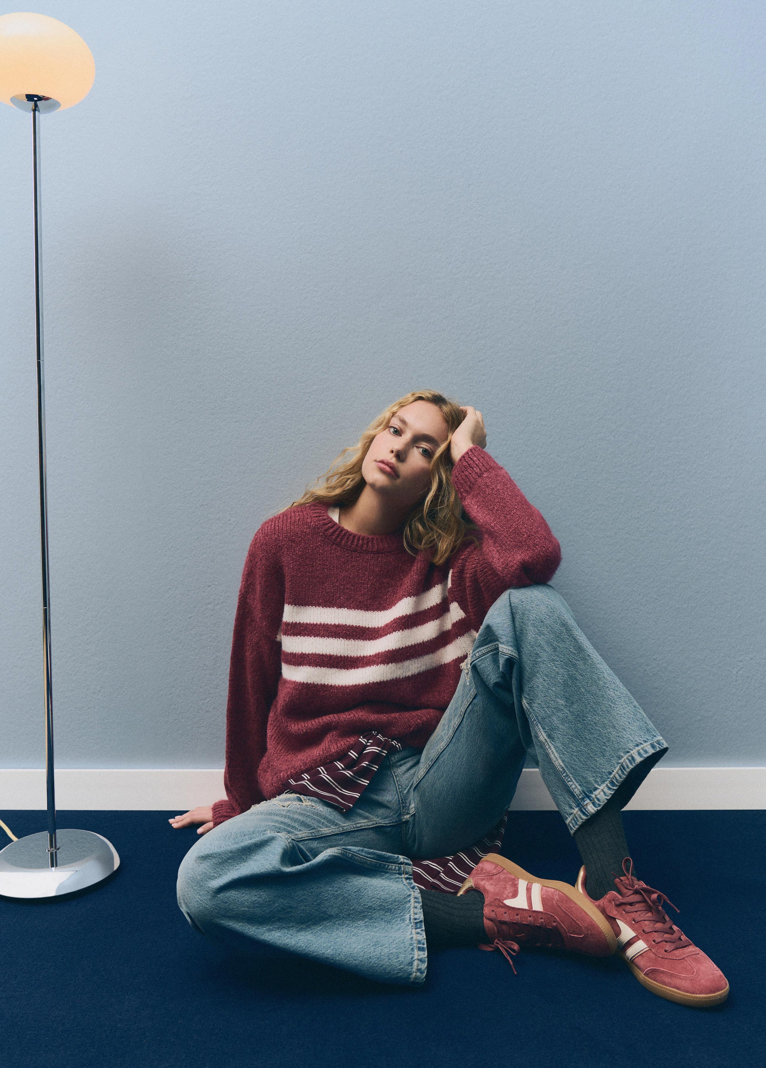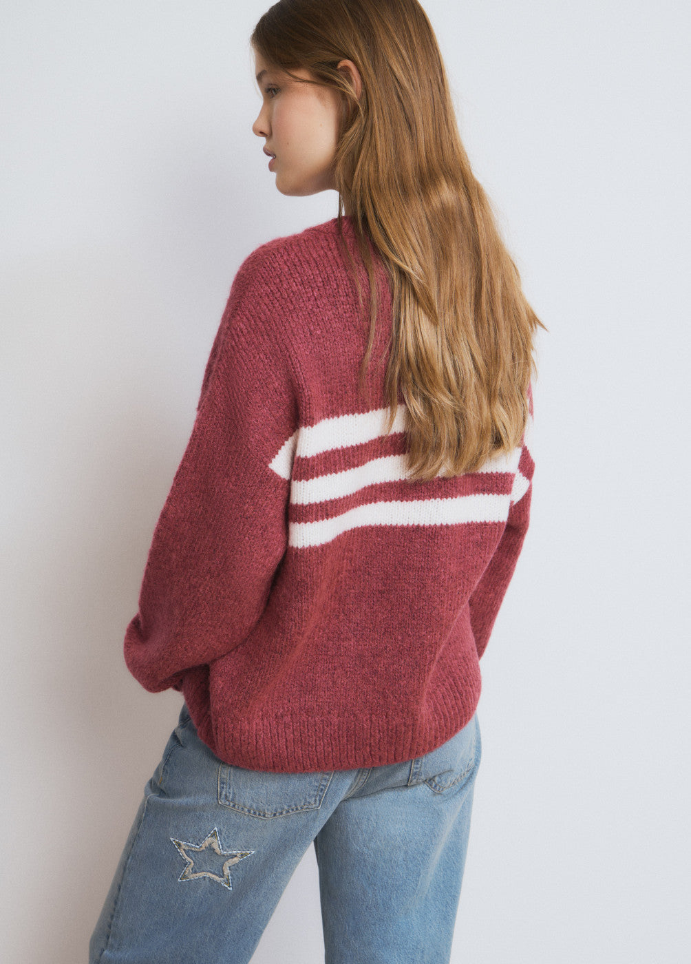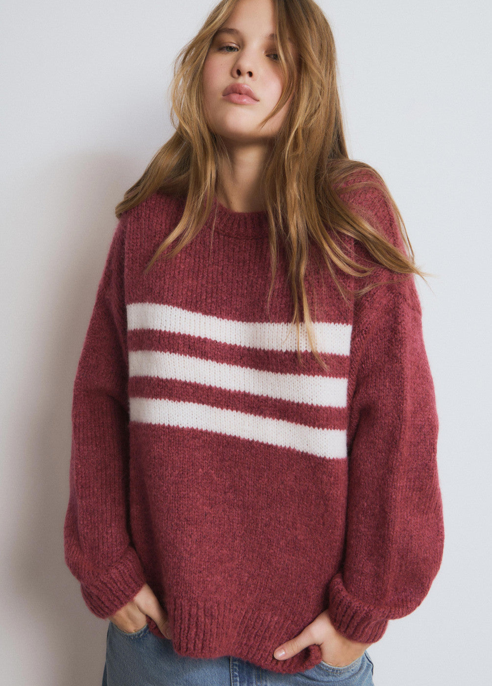 Jersey cuello redondo con detalle de rayas en el centro.