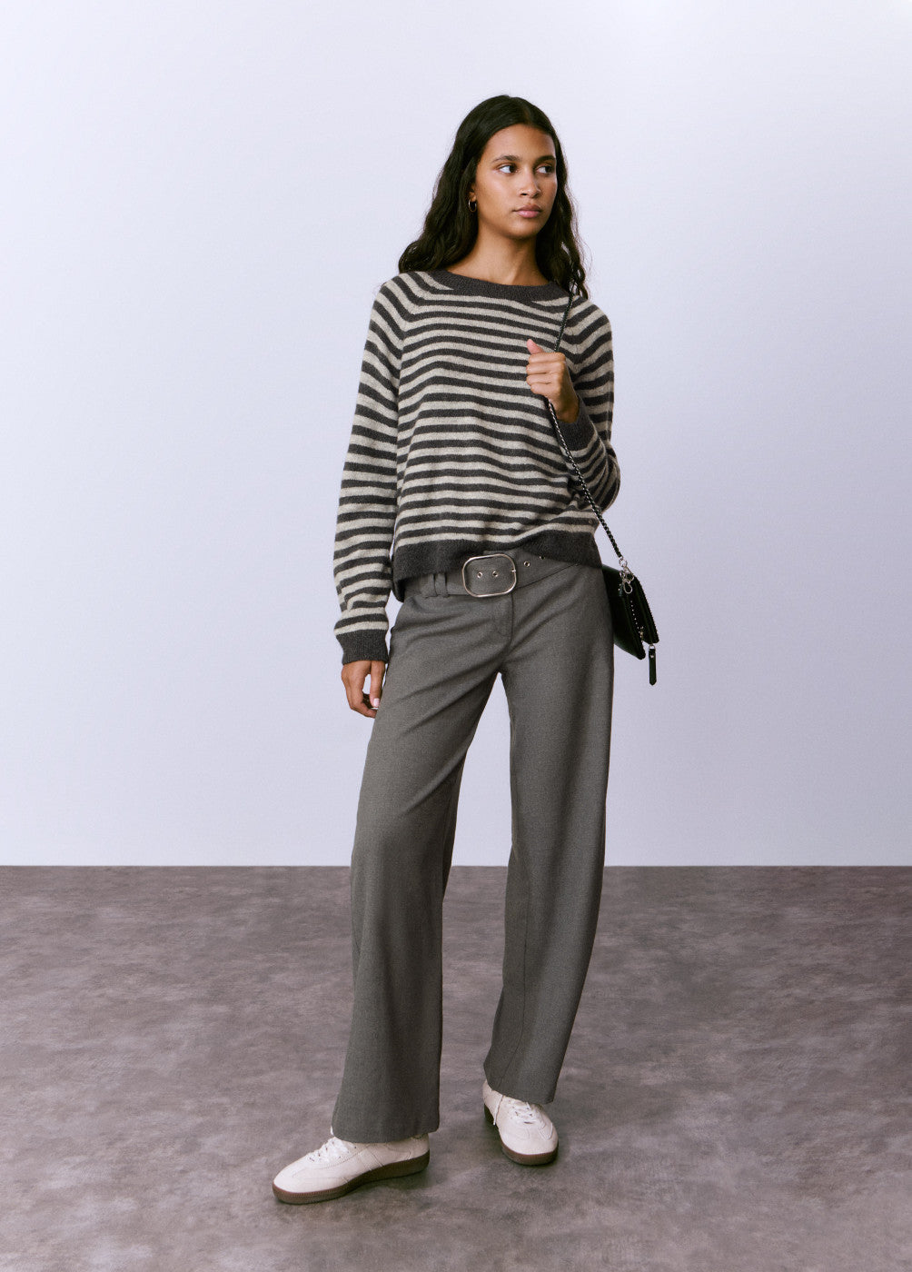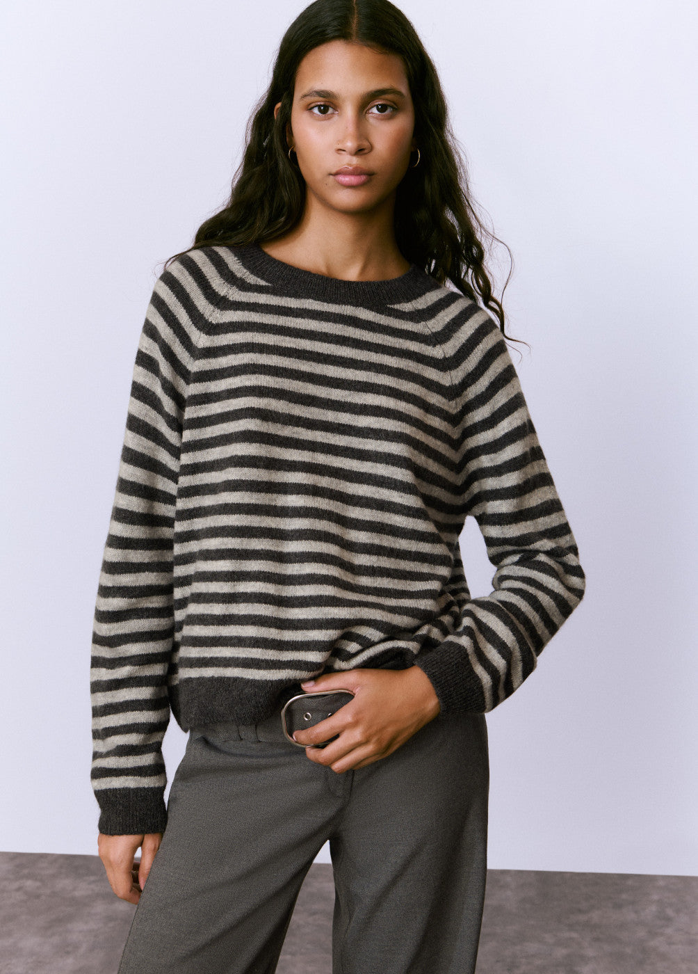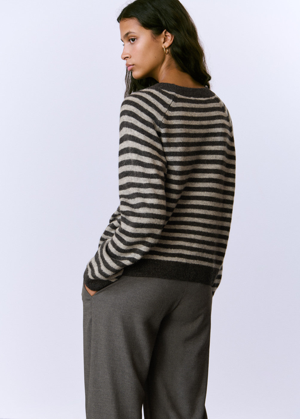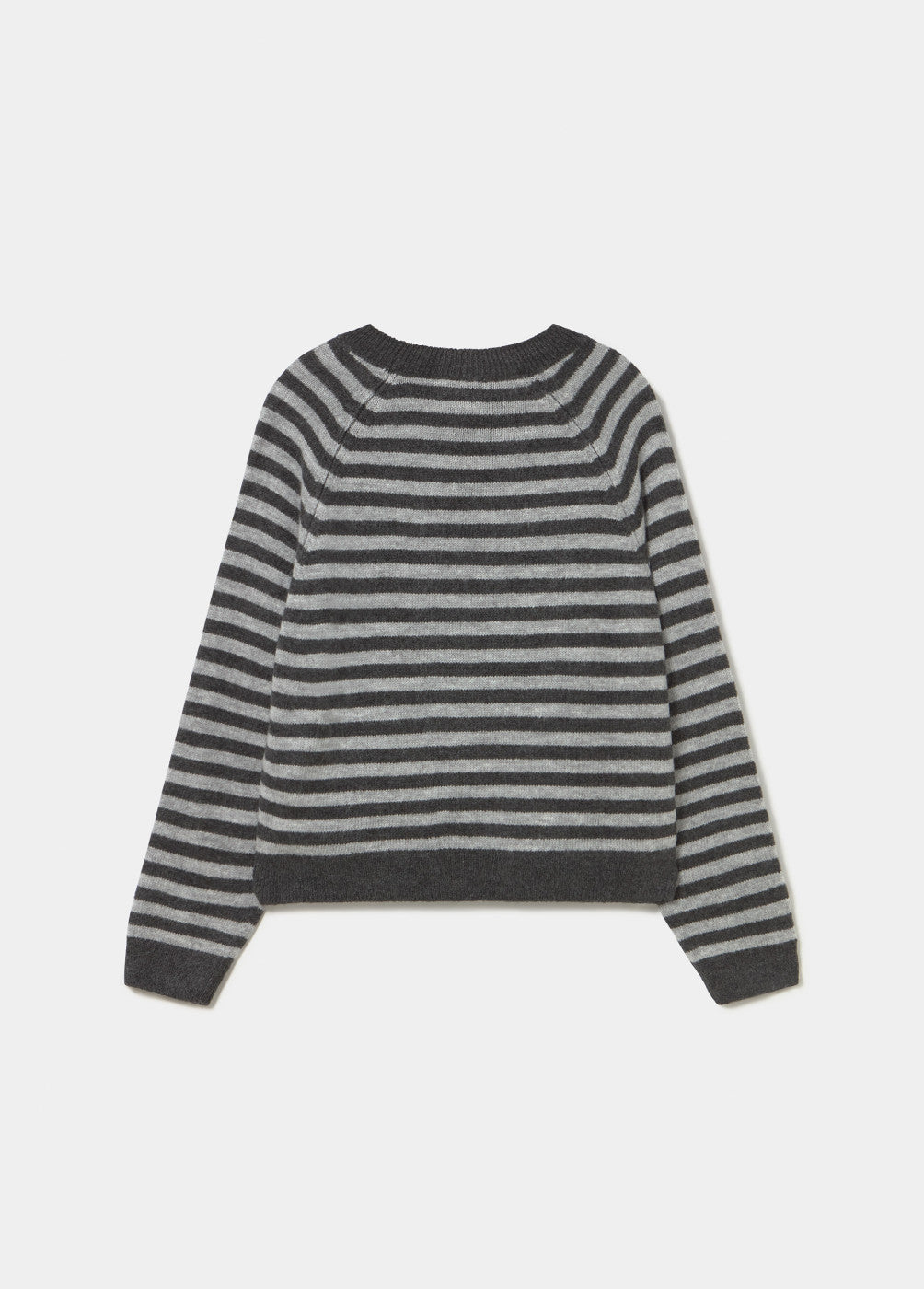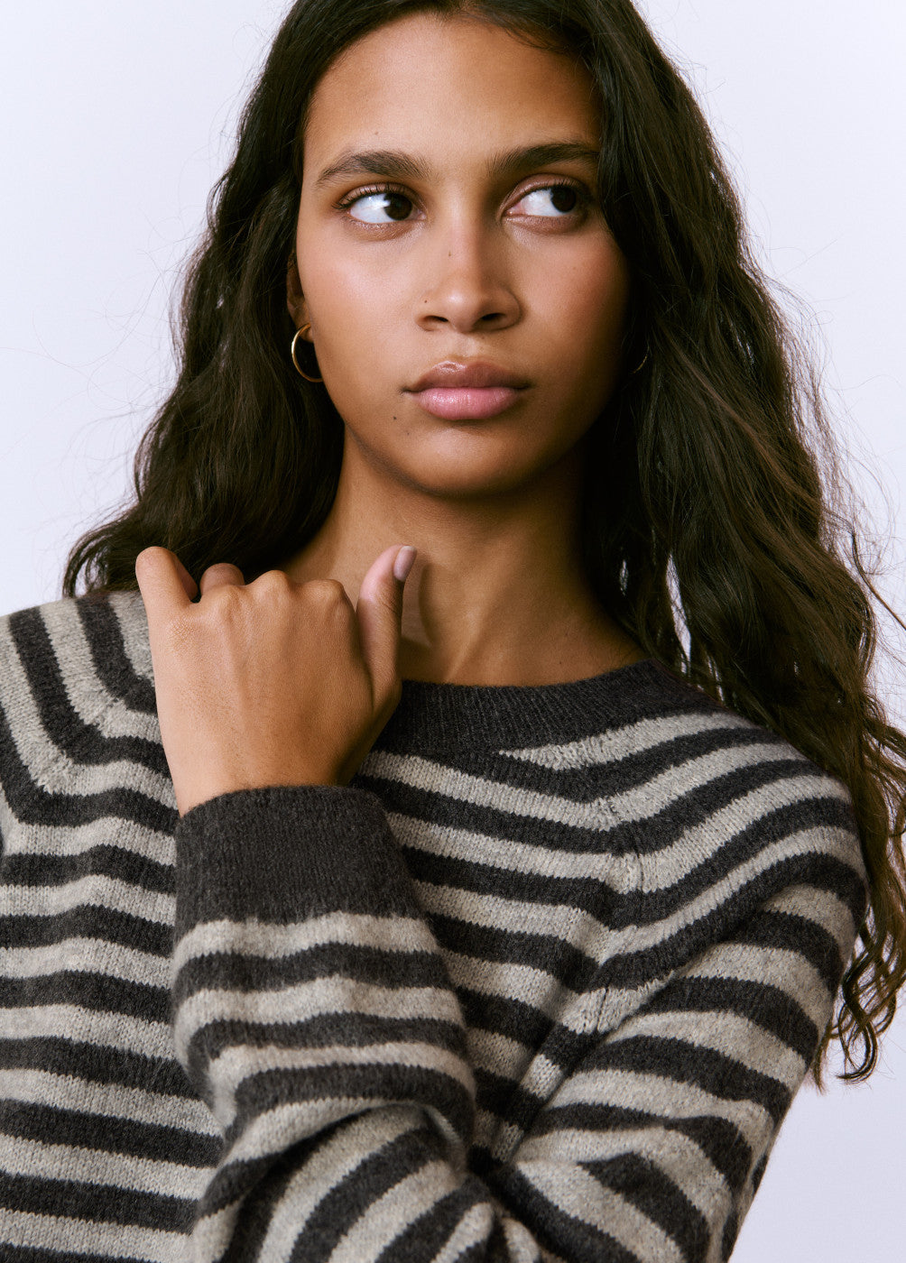 Jersey básico fino de rayas, manga larga y cuello redondo.