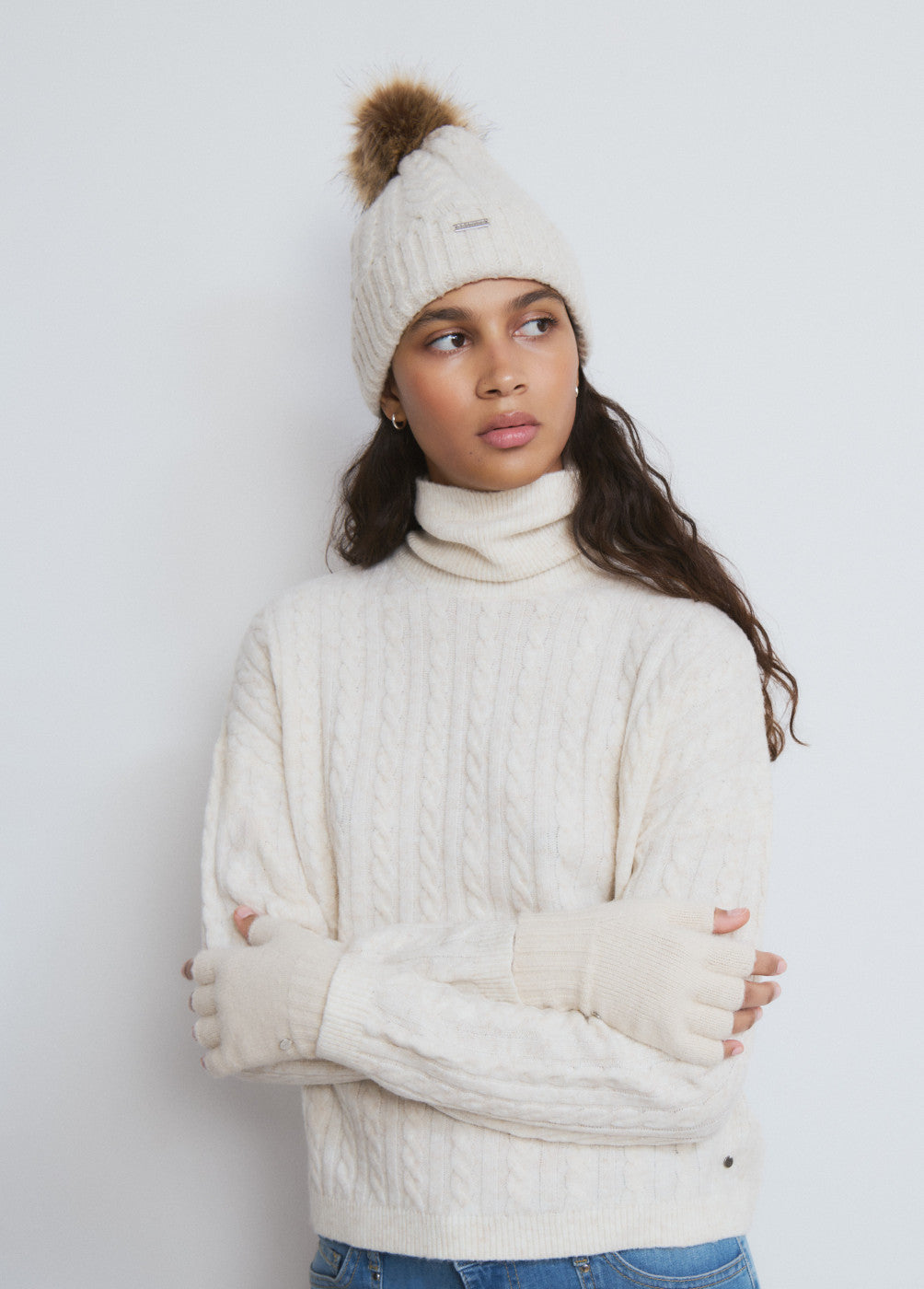 Mitones lisos en color crudo.