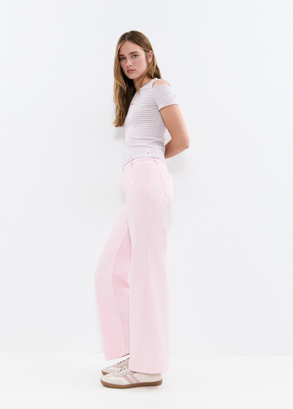 Pantalón culotte con detalle de bolsillos frontales. Tiro medio y wide leg.