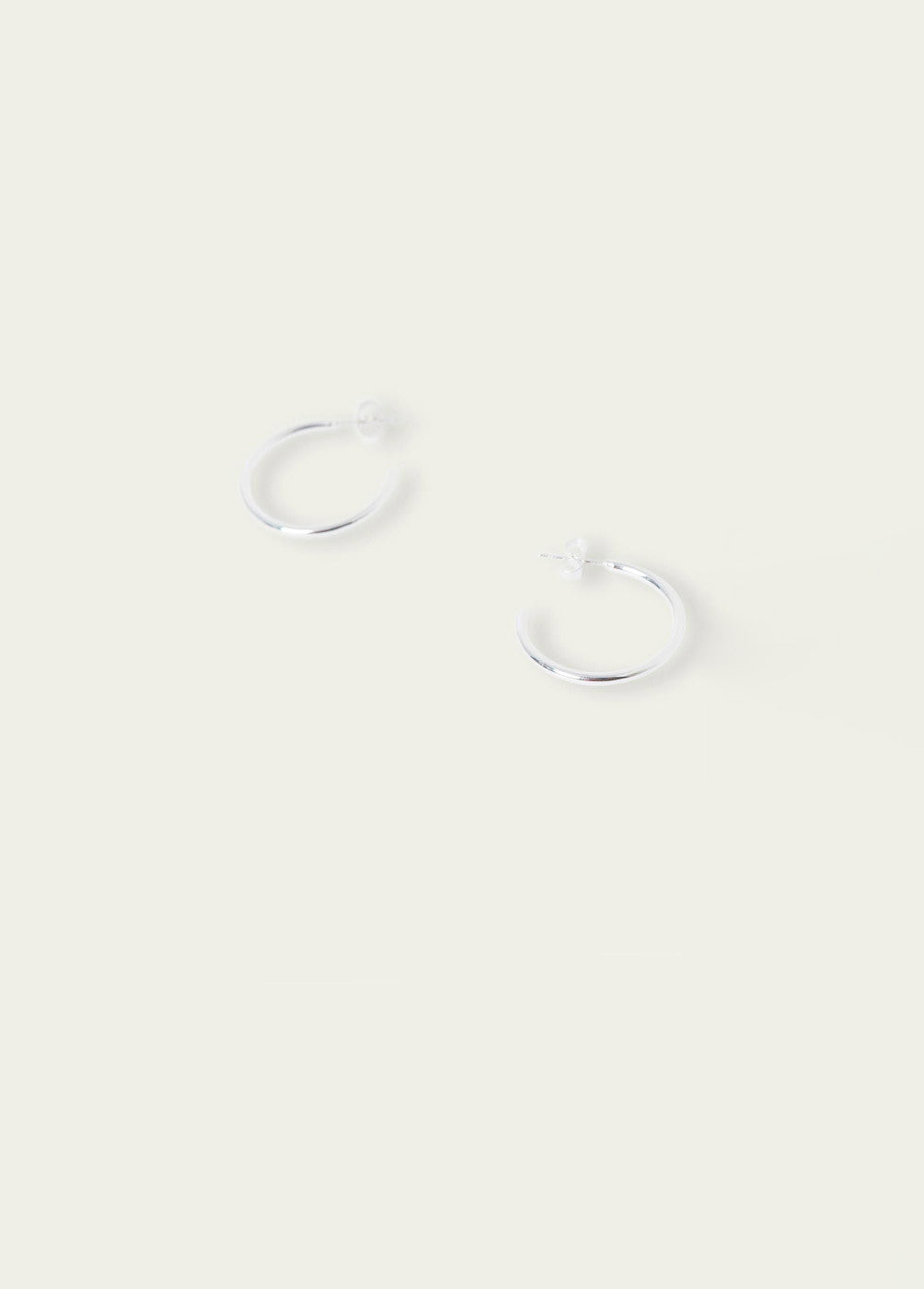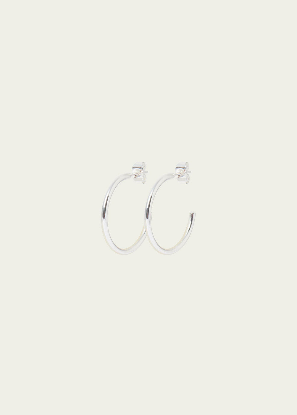 Aros de tamaño mediano en plateado con cierre mediante tuerca.