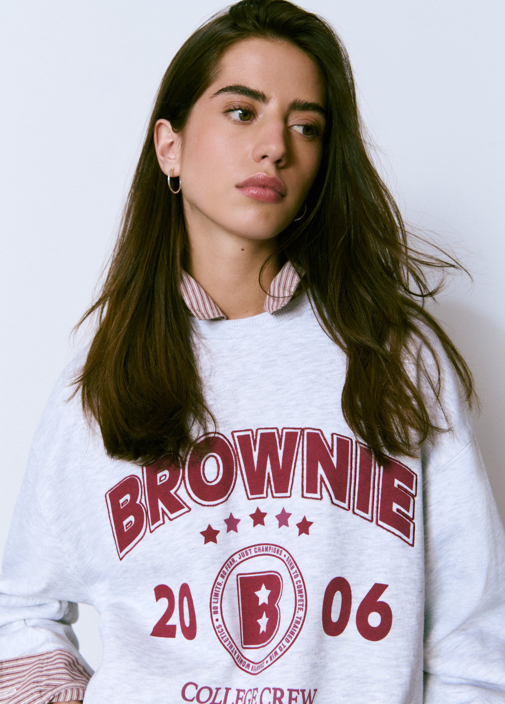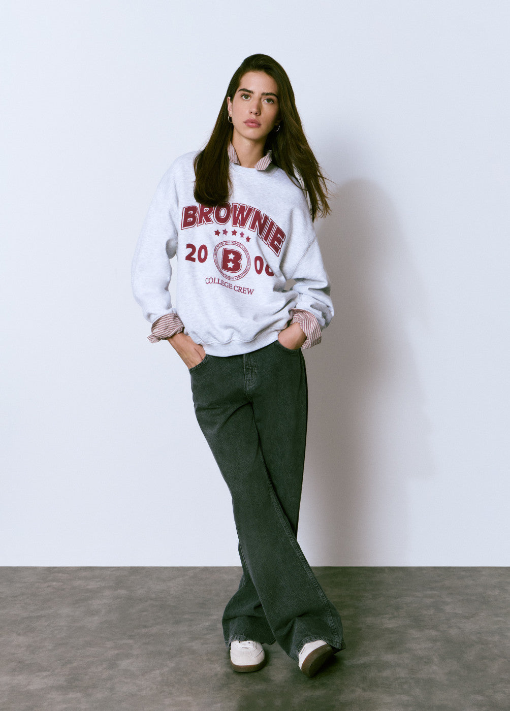 Sudadera de manga larga con dibujo frontal y logo Brownie bordado en la espalda.