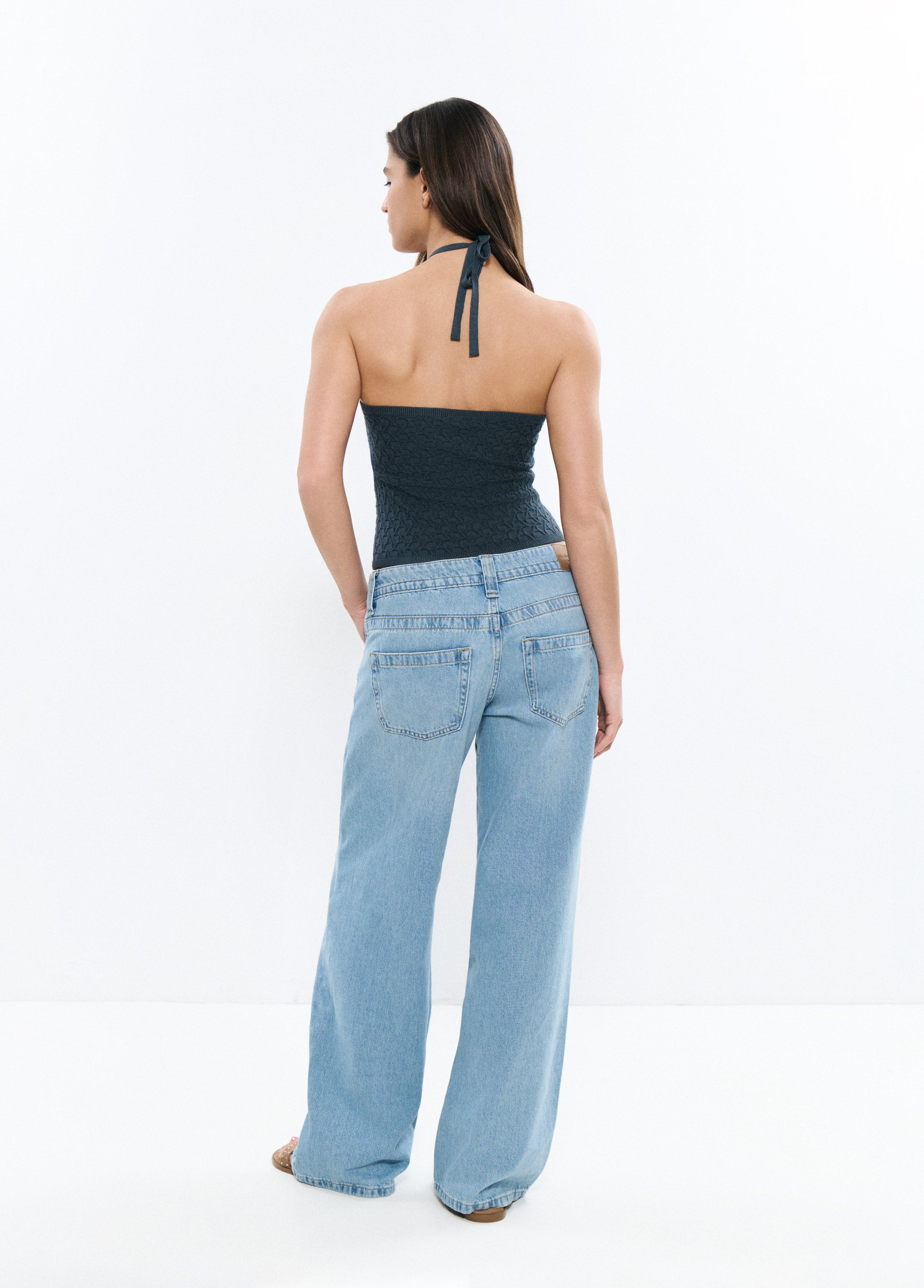 Top con cuello halter y tejido con textura.
