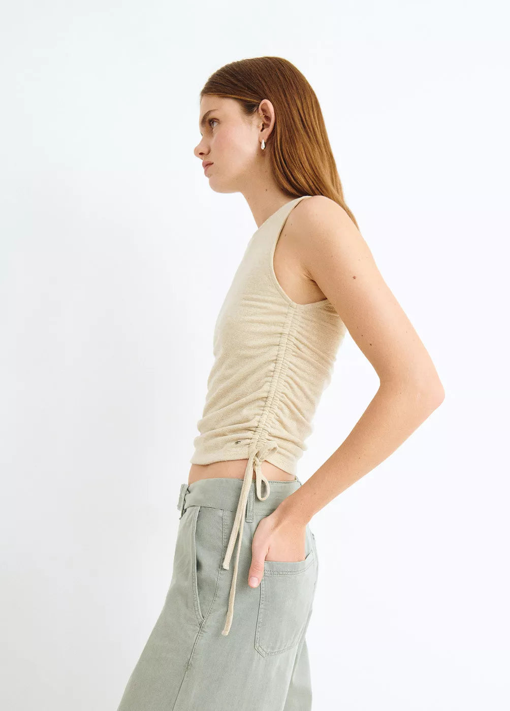 46% poliéster 22% viscosa 15% hilo metalizado 13% poliamida 4% elastano